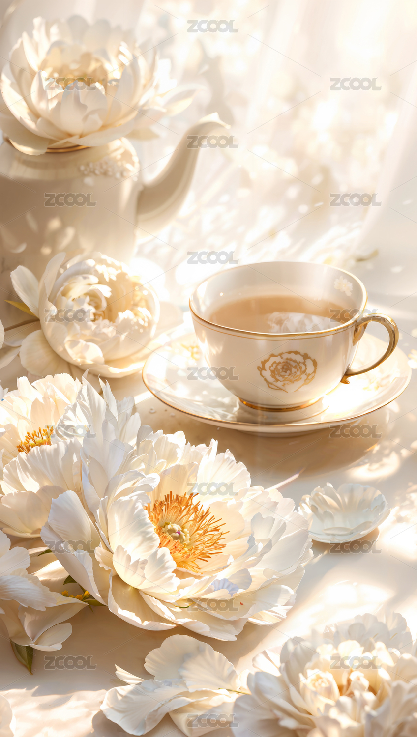 茶杯,中式,中国风,复古,庭院,园林,窗框,窗户,秋天,金秋