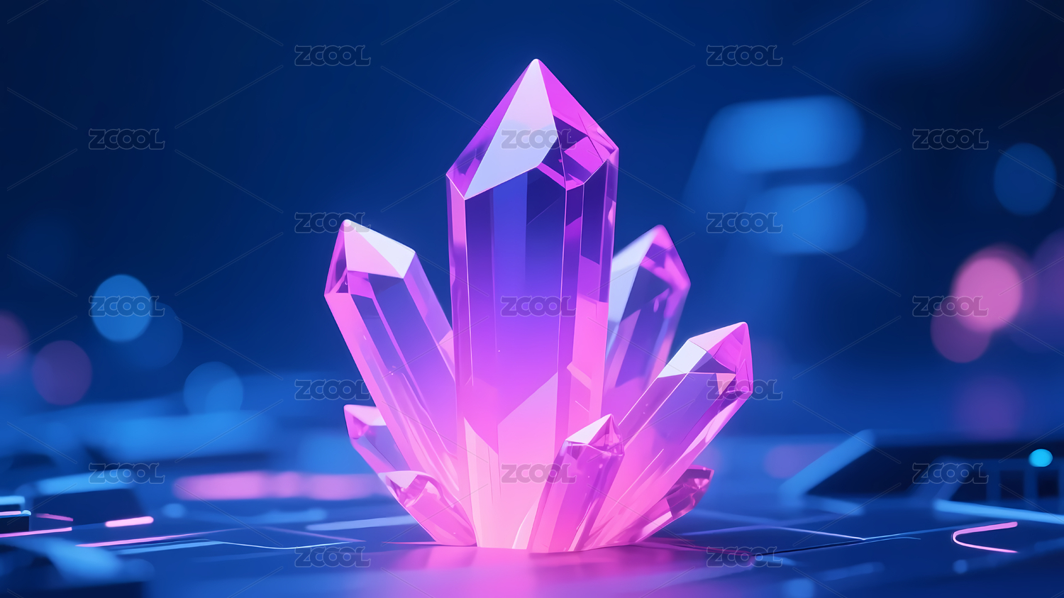 黑底原画魔力发光晶簇魔法宝石灯3D插画