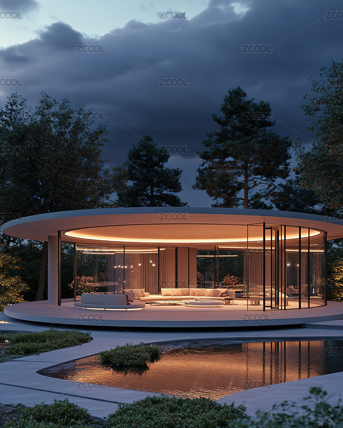 极简风格的现代建筑设计,带游泳池