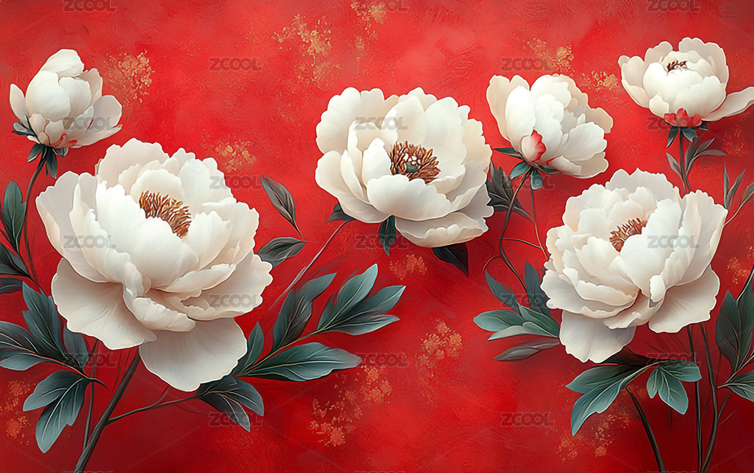 红色背景下的牡丹花墙纸国花