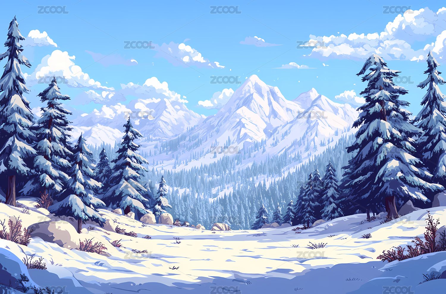 冬日白雪覆盖的林间乡村原野风景壁纸