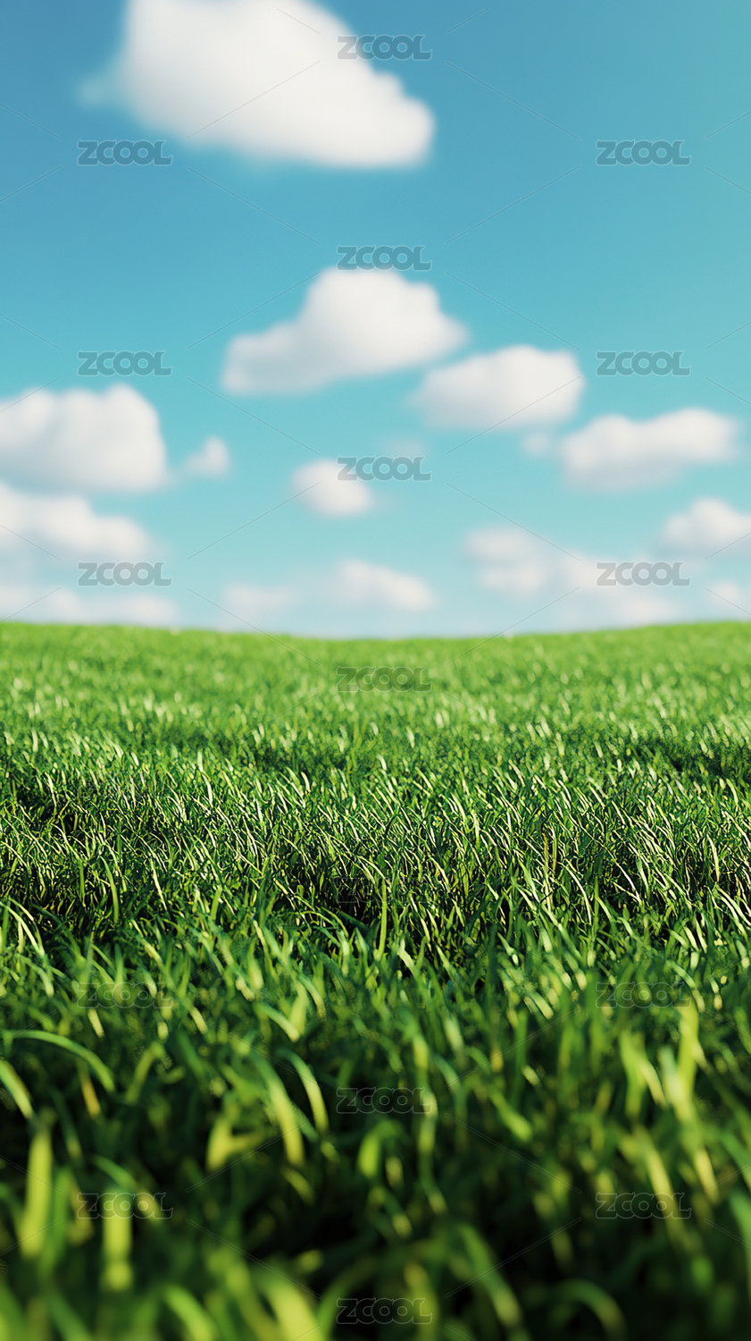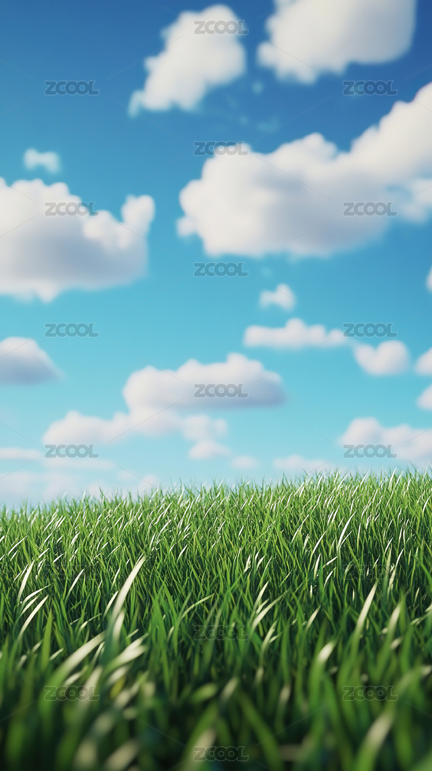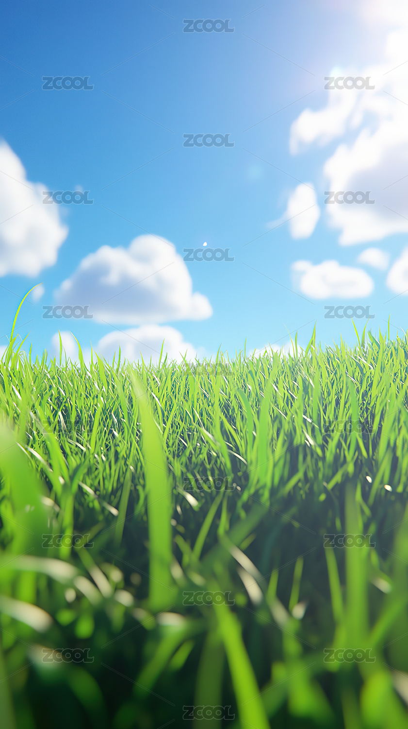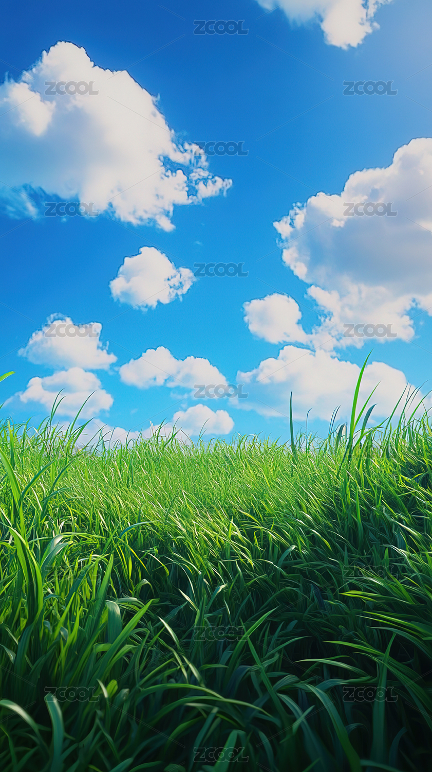 绿色草地特写夏日蓝天白云风景