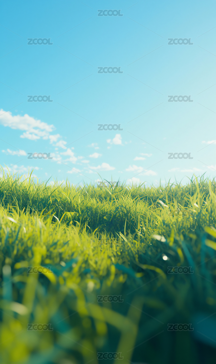 蓝天白云下的绿色的草地