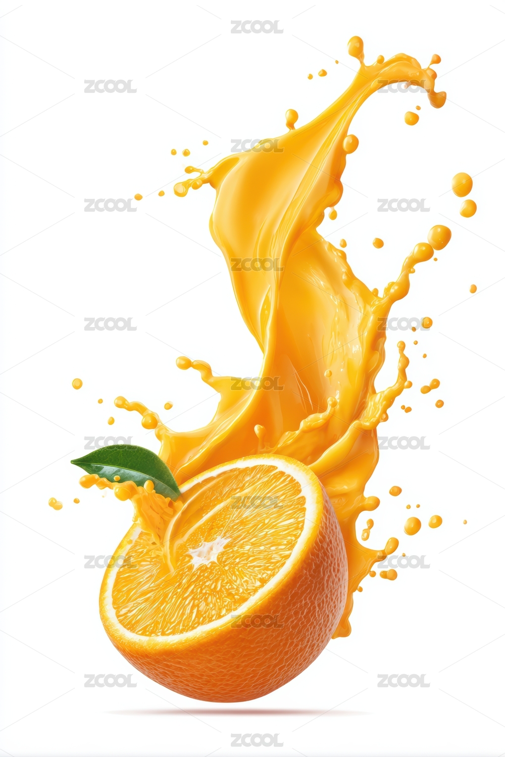 果汁,橙汁,液体,流动,动感,橙子,橘子,插画,水粉画,叶子