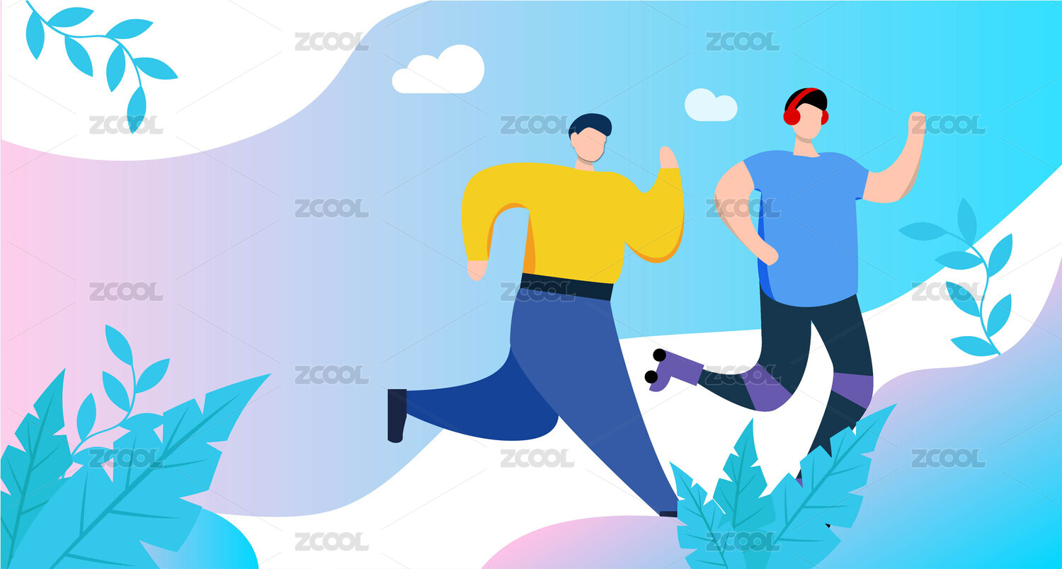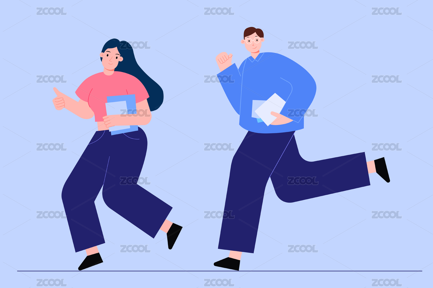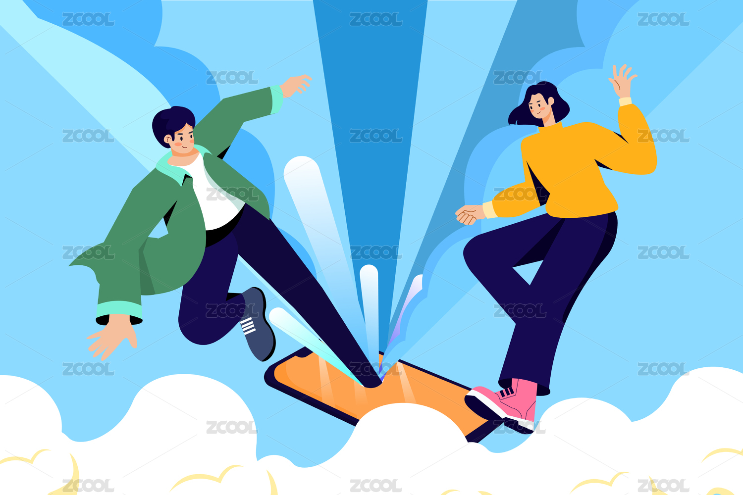 五四青年节青春活泼快乐年轻人跳跃庆祝插画