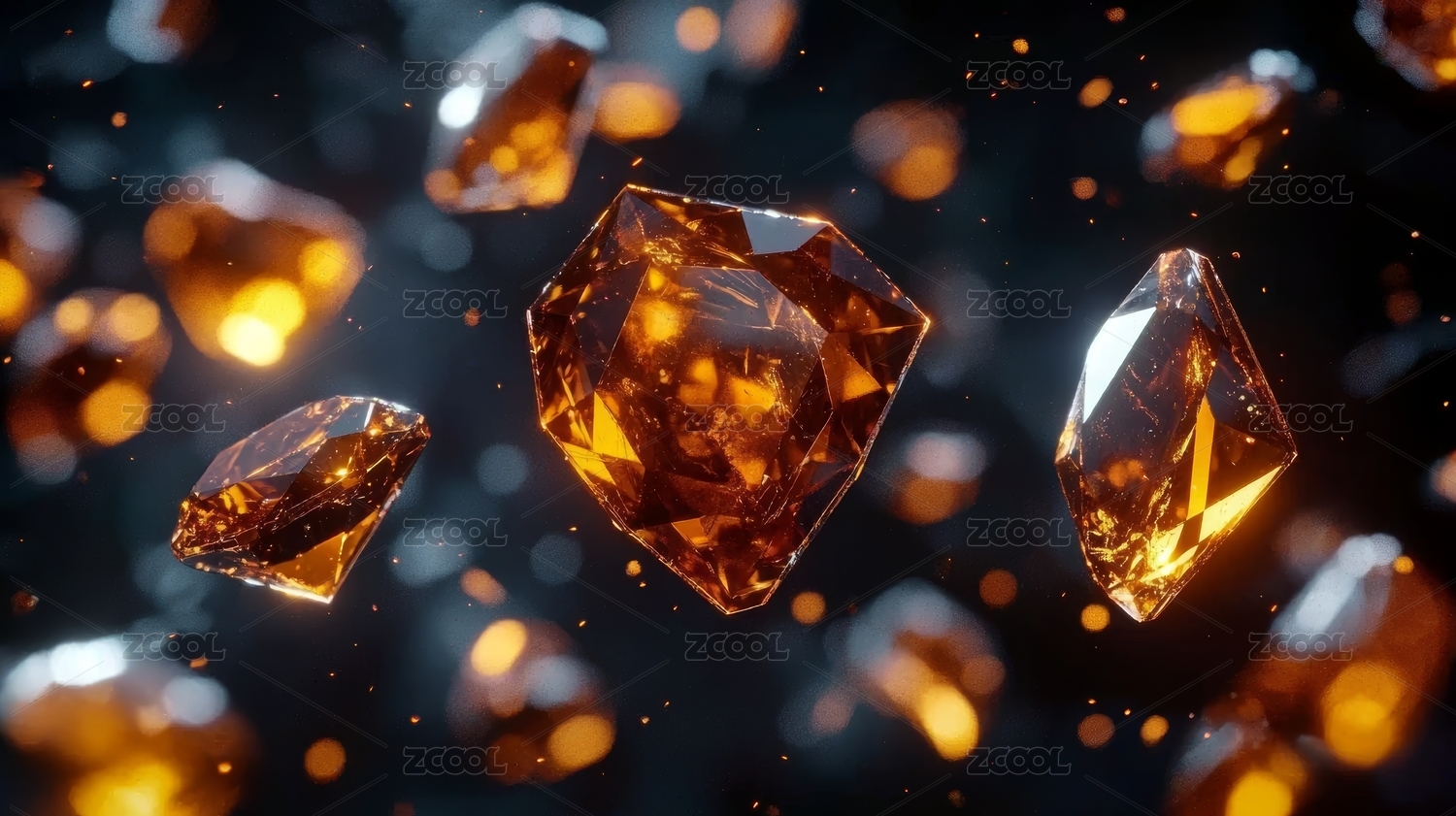 金黄色水晶簇在深蓝背景下的璀璨展示