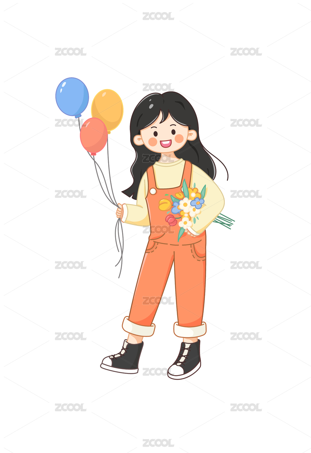 女孩,女生,儿童,卡通,儿童节,小朋友,学生,插画,插图,元素