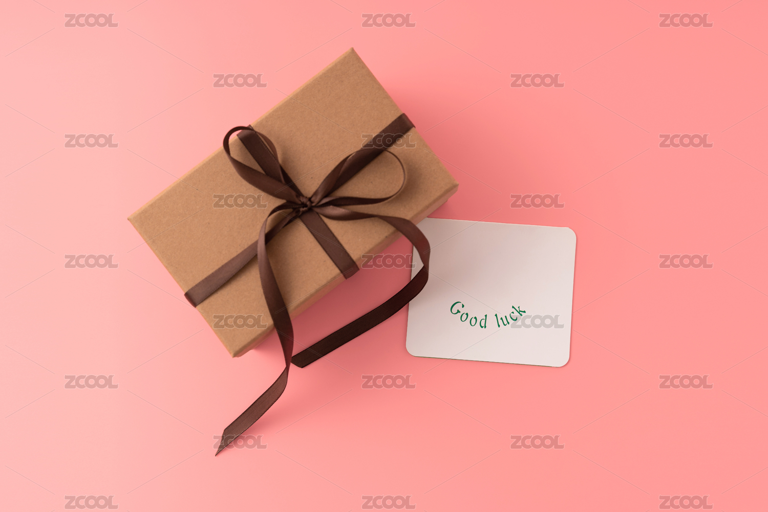 精美的牛皮纸礼盒与幸运卡片,节日礼物概念