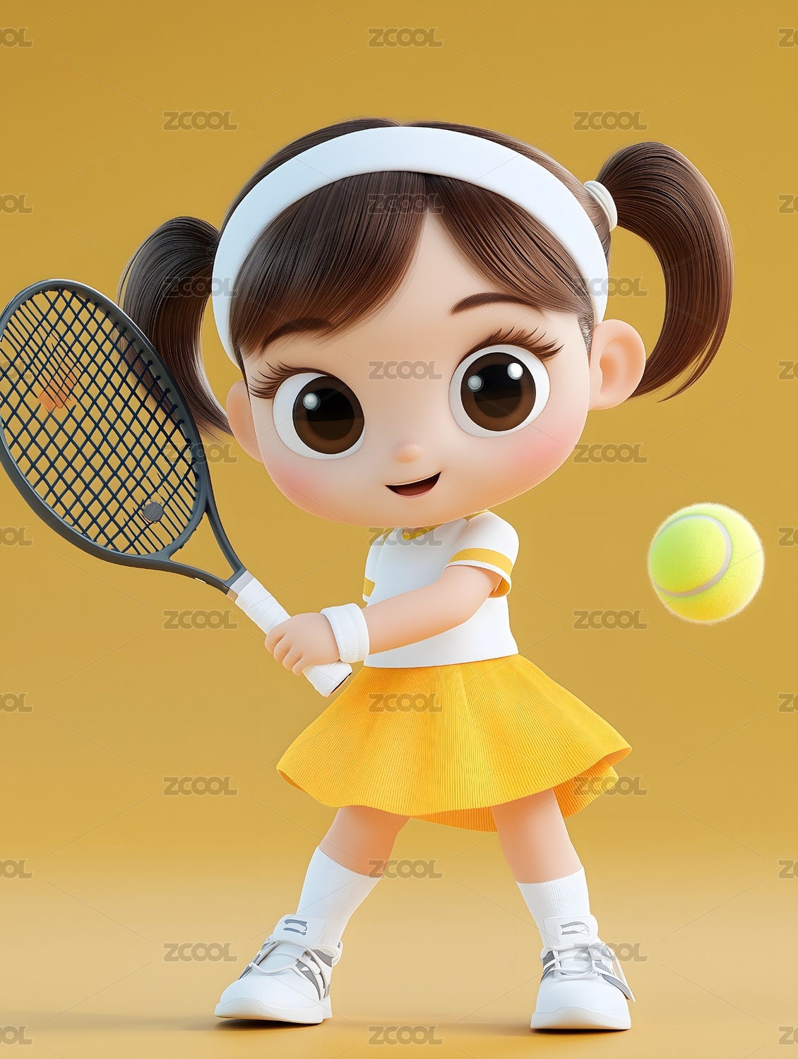 打网球的可爱小女孩插画3D