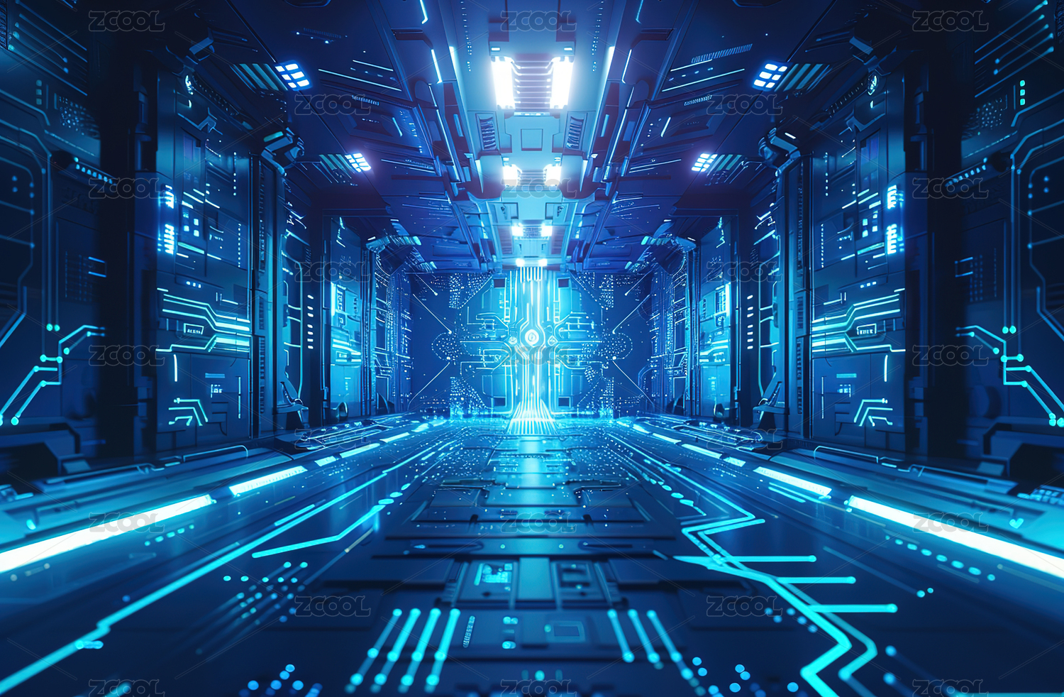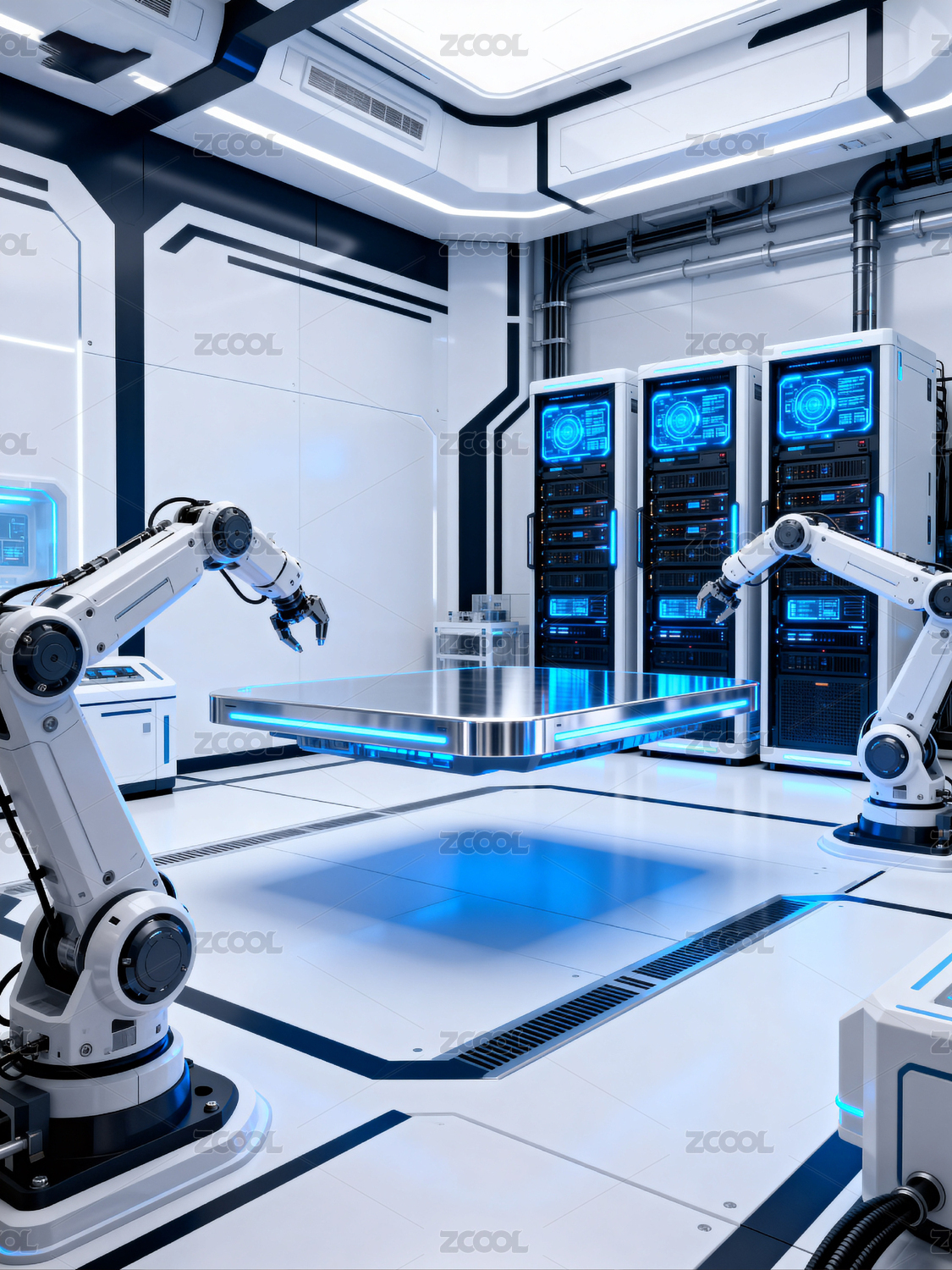 机器人,自动化,生产线,工厂,未来科技,智能制造,工业4.0,科技感,蓝色,灯光