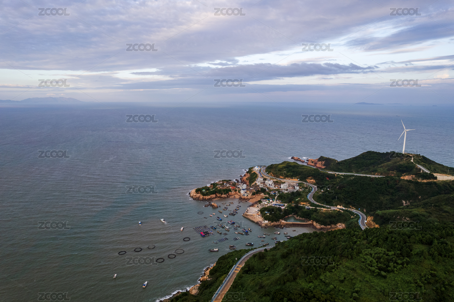 福建霞浦海尾角村镇海岛风力发电自然风光