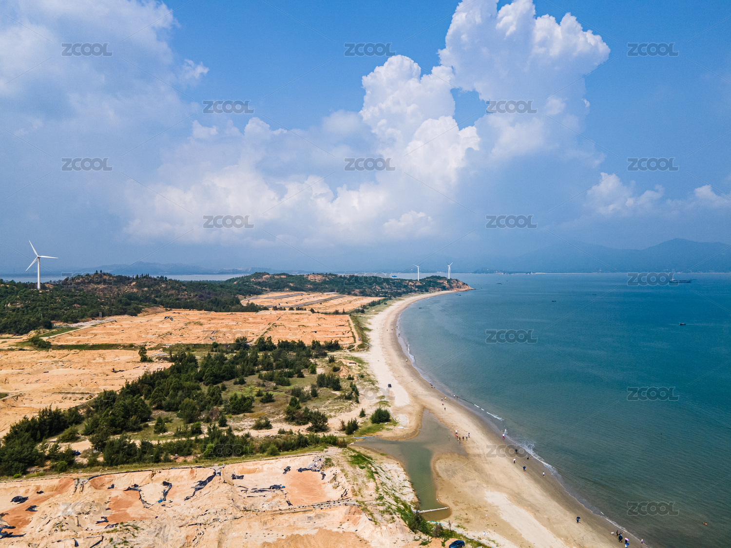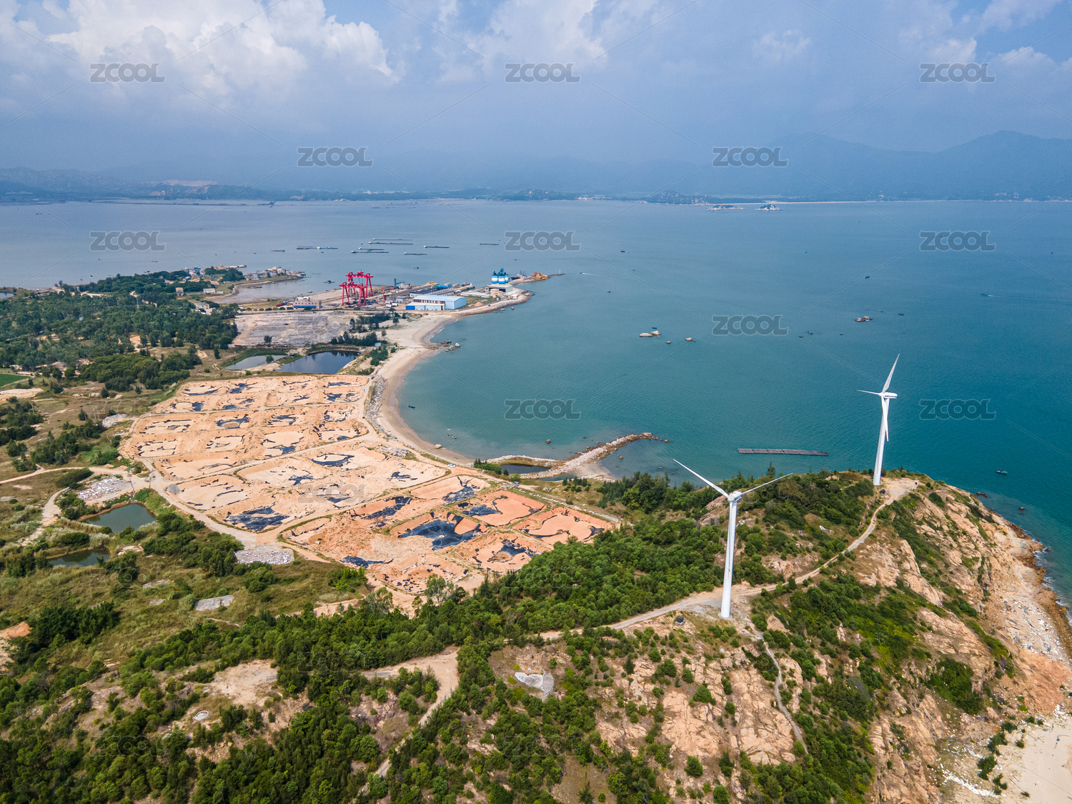 中国广东汕尾红海湾施公寮风车岛海岸线风光全景