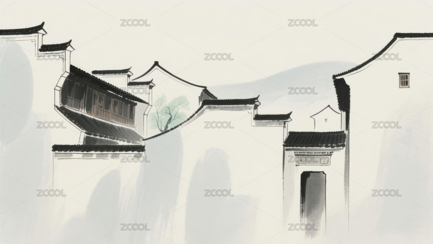 徽派建筑,中式建筑,屋檐,国风,树,树叶,墙,极简主义,建筑物,春天