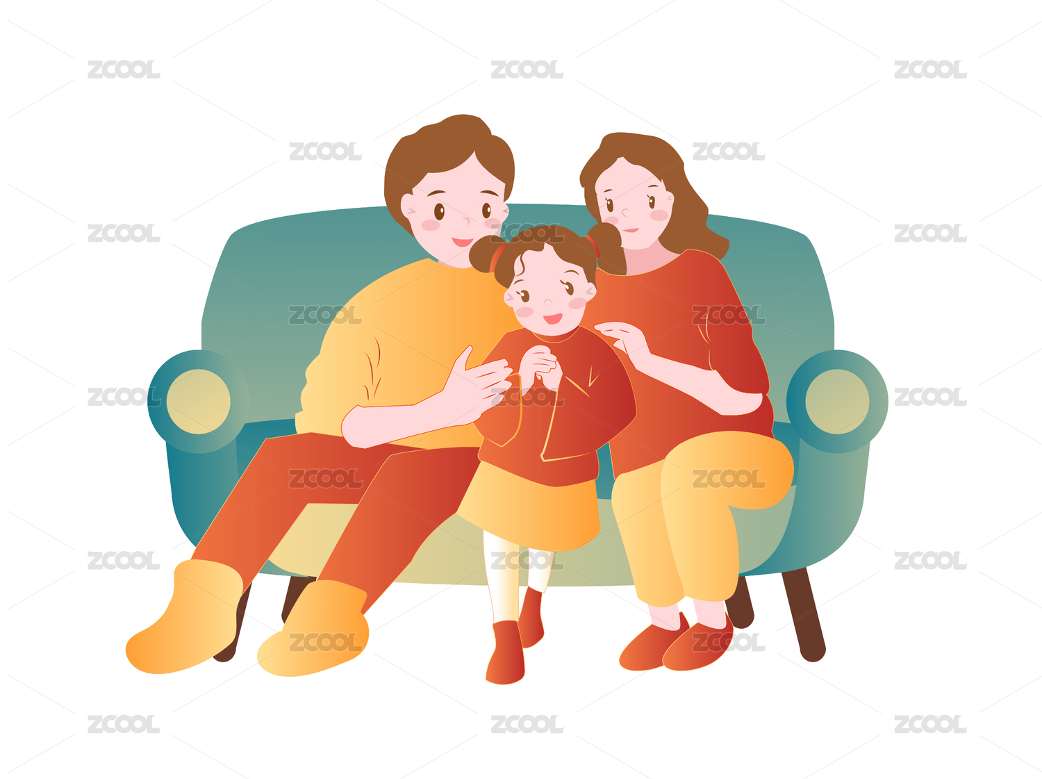温馨一家人形象插画