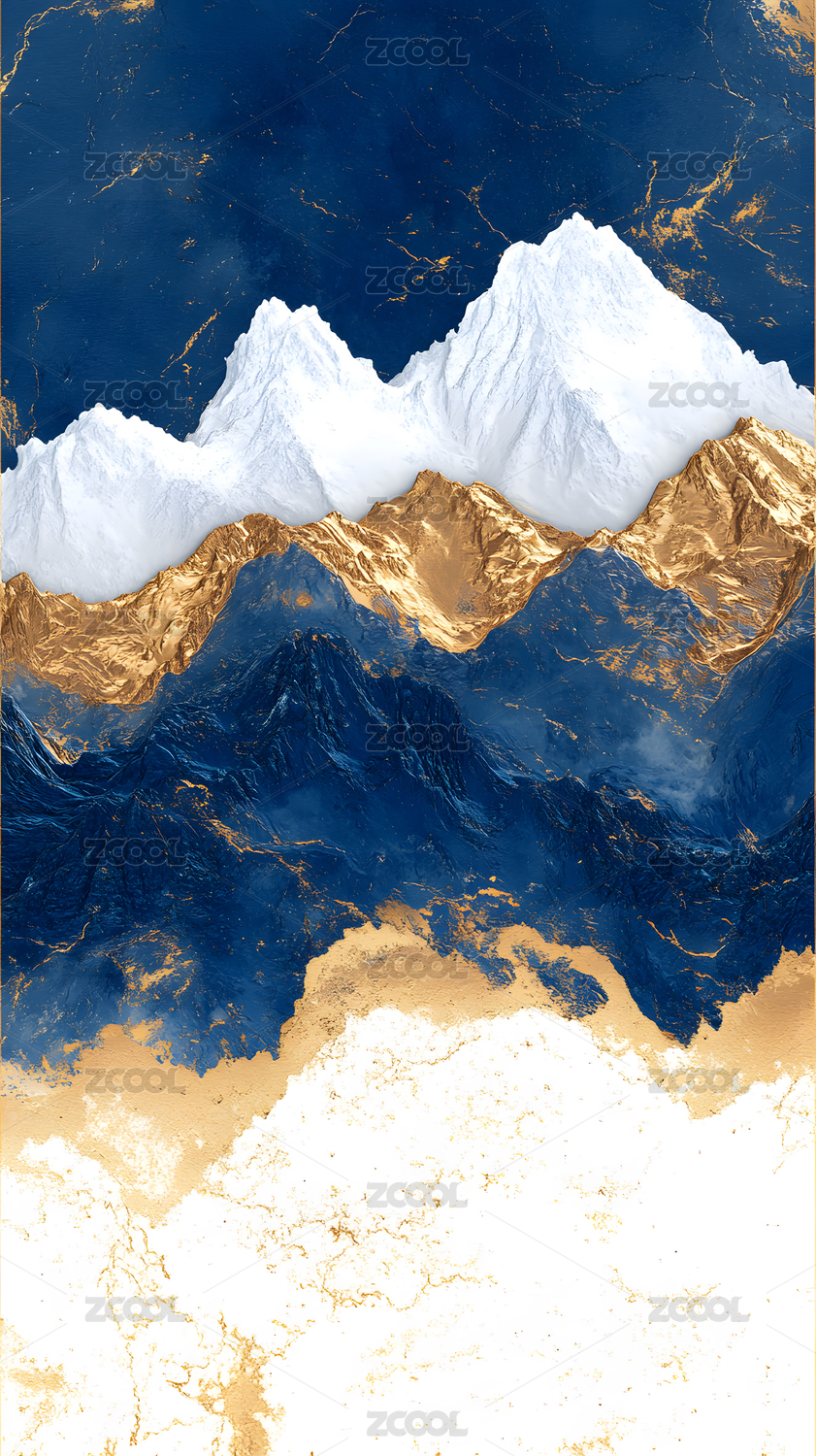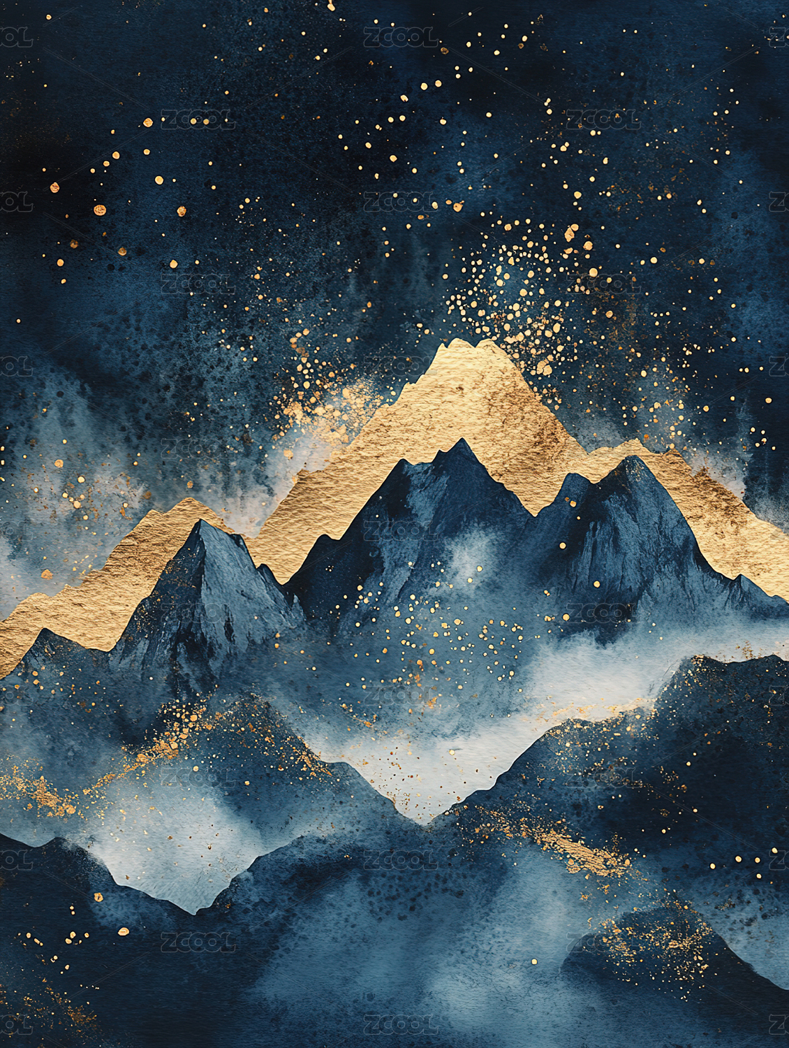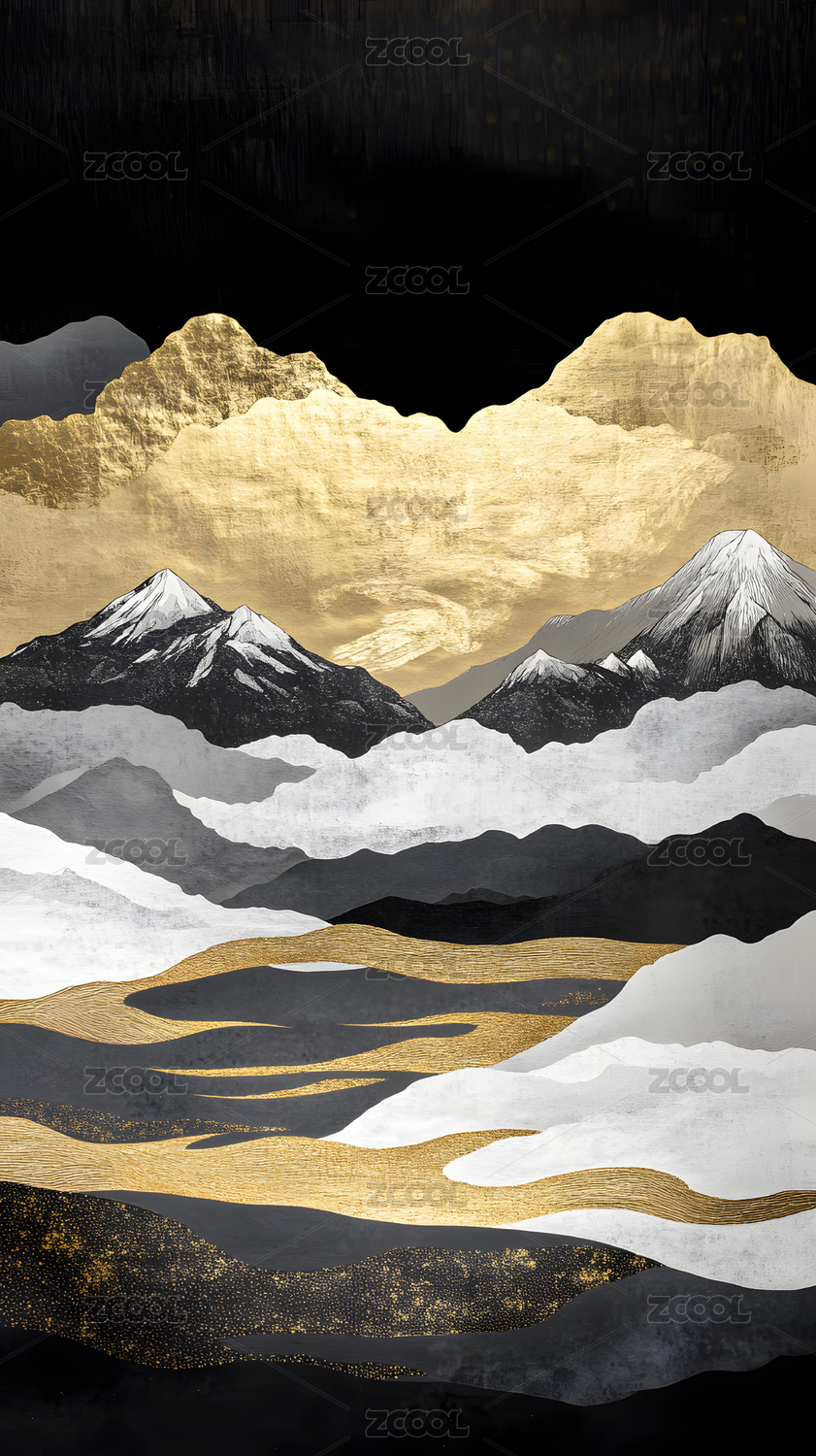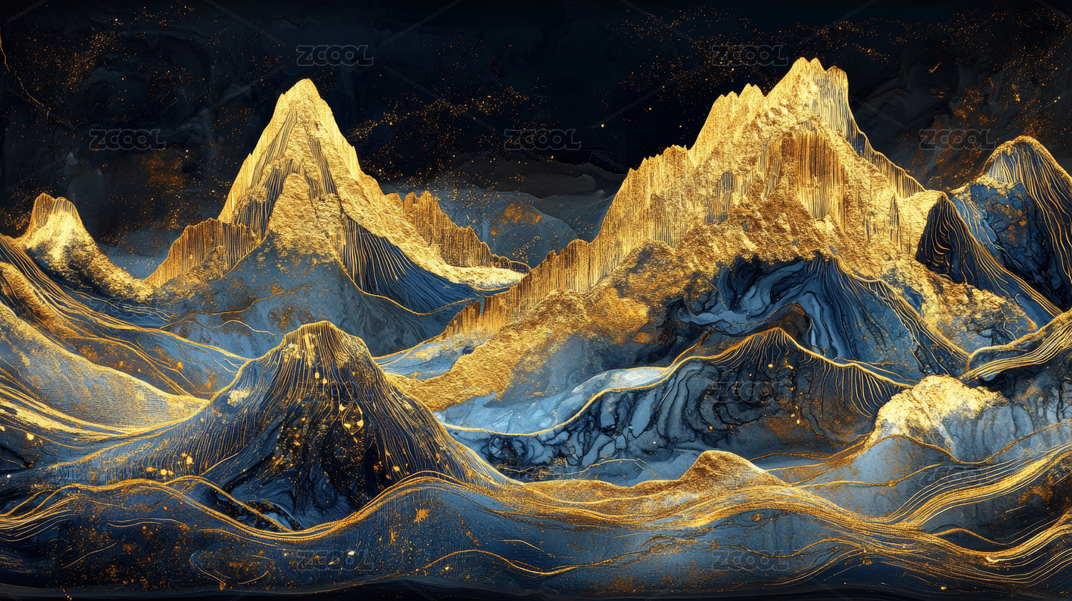 AIGC202404,山脉,山川,高山,镀金,国风,金色,流体,艺术