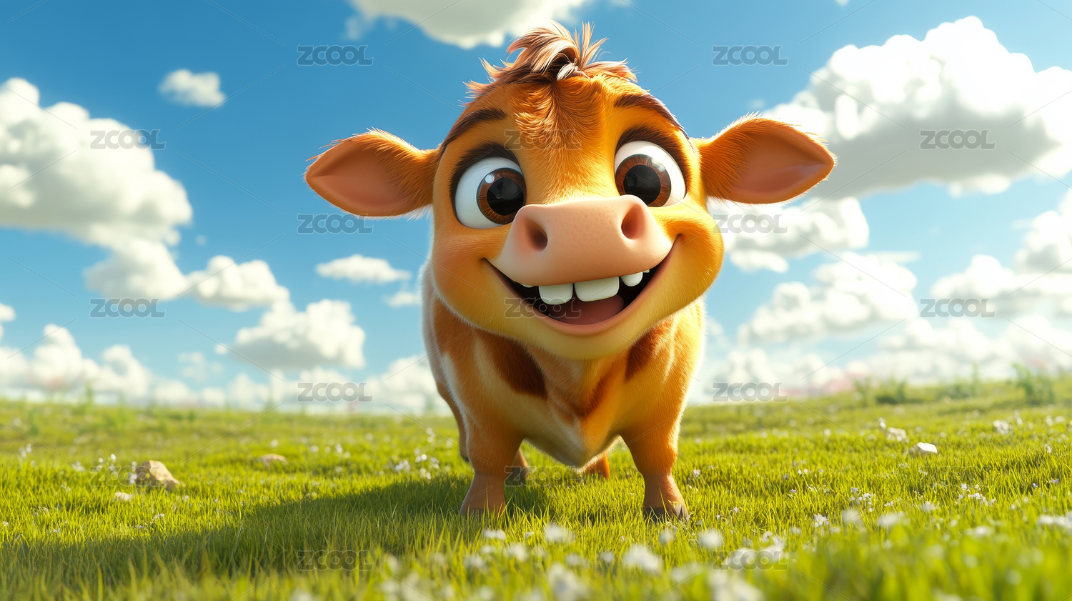 背景,插图,动物,3D,立体,三维,渲染,卡通,牛,生肖