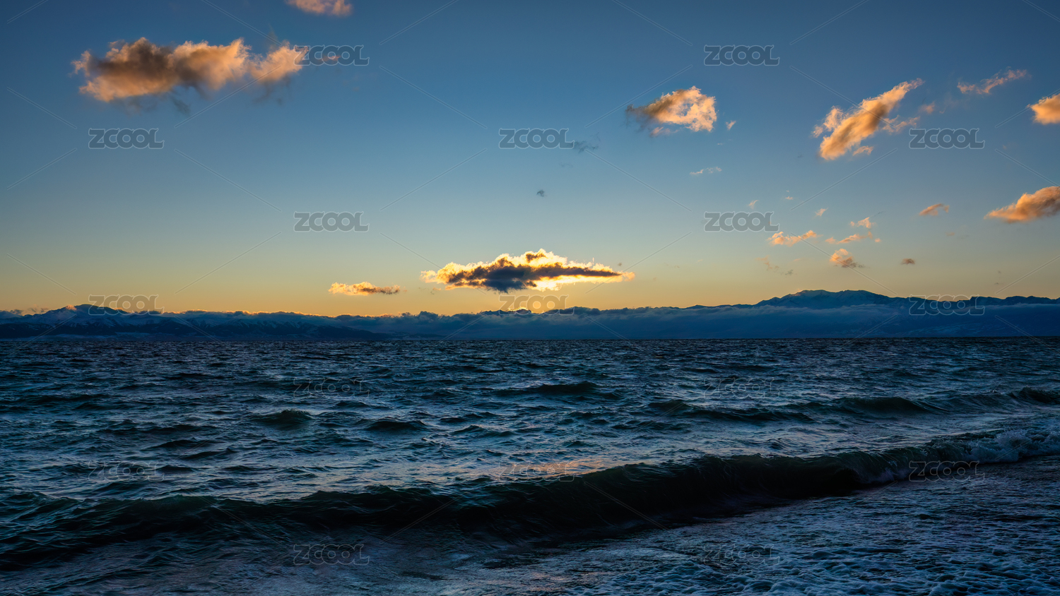中国新疆赛里木湖十月傍晚风光