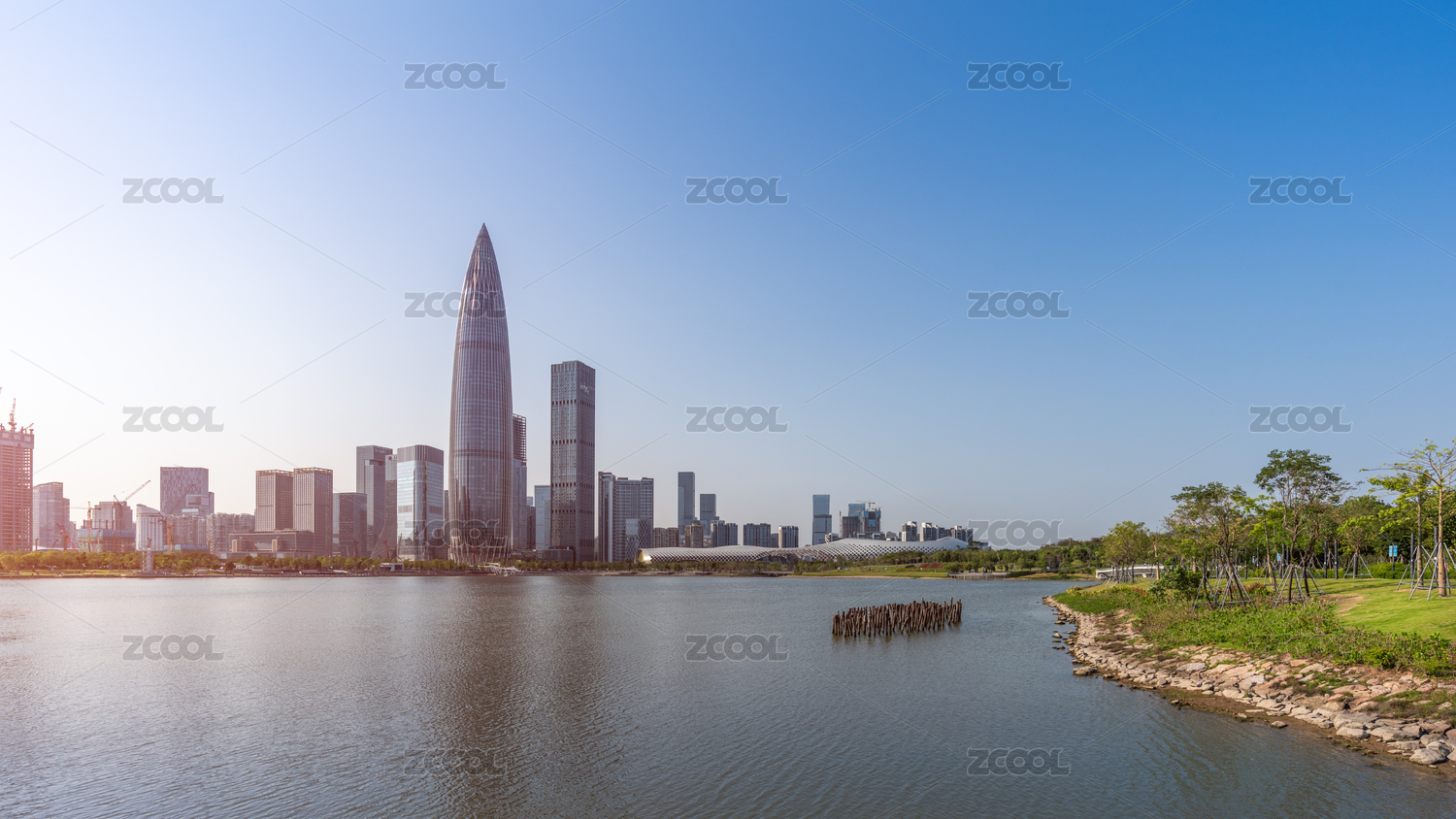 深圳湾后海CBD建筑天际线和深圳人才公园