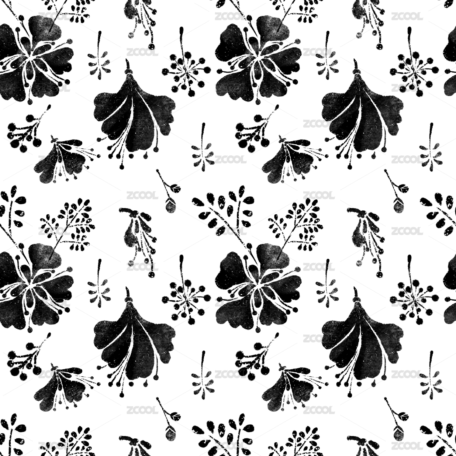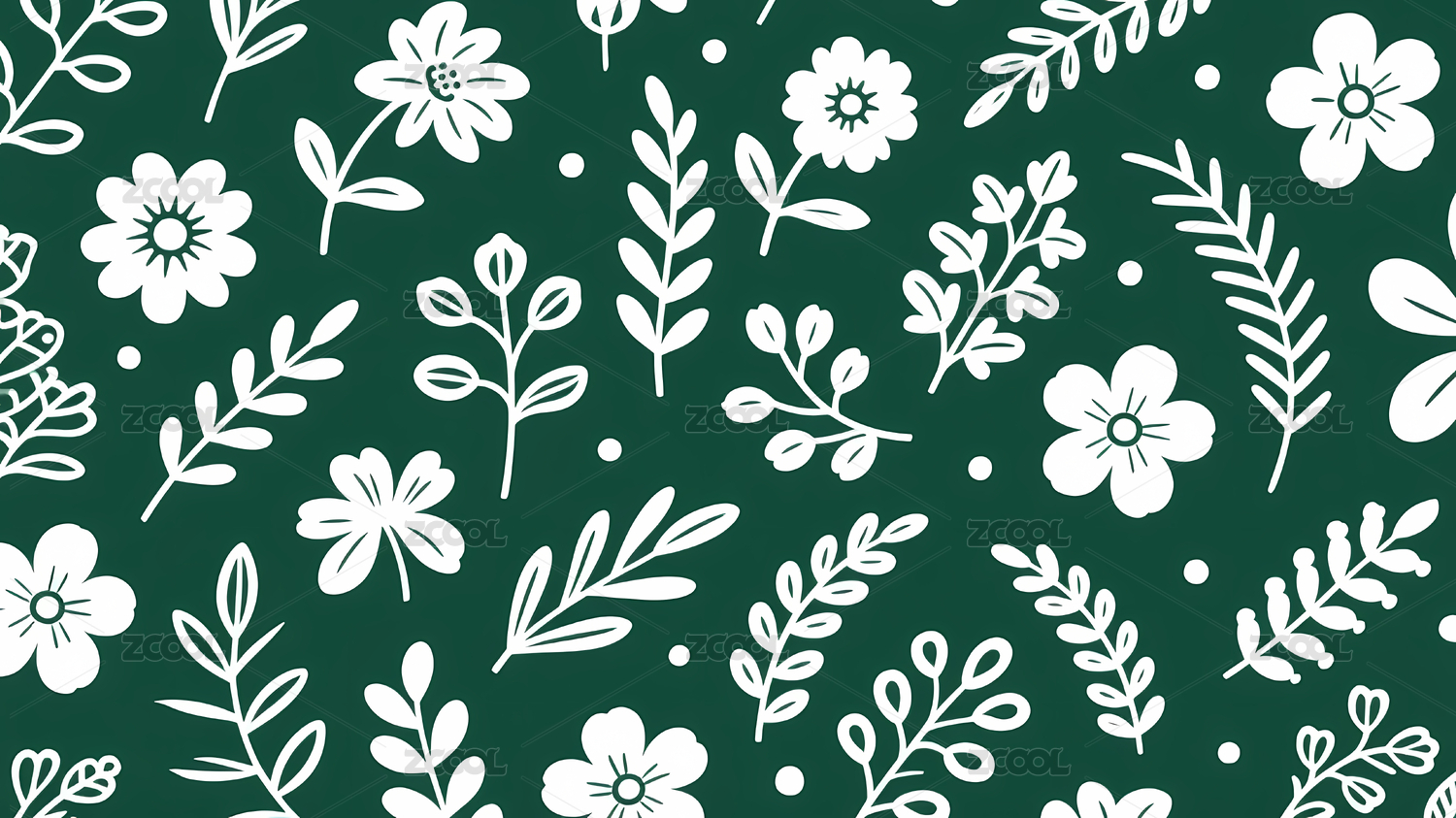 清新花花草草线稿纹理背景素材 素描手绘插画