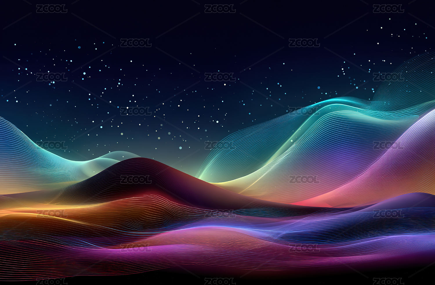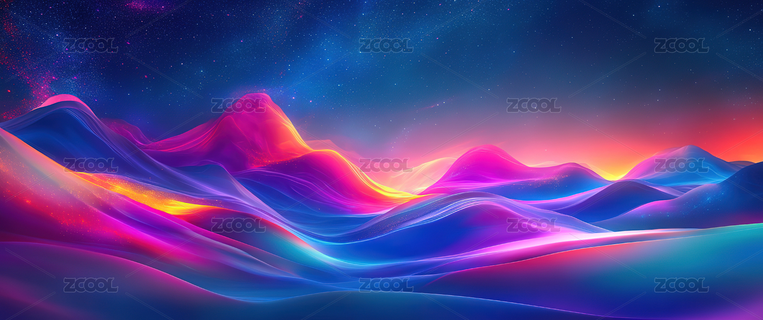 抽象霓虹波浪星空景观