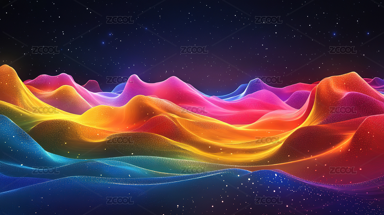 星空下的彩色波浪景观