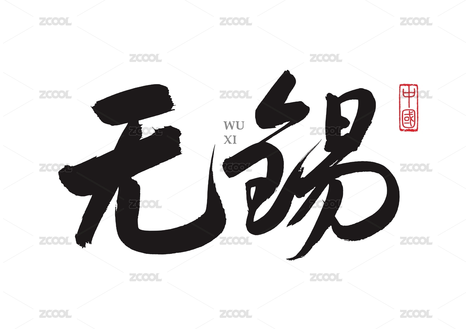 中国旅游城市地名原创毛笔书法矢量字体-无锡
