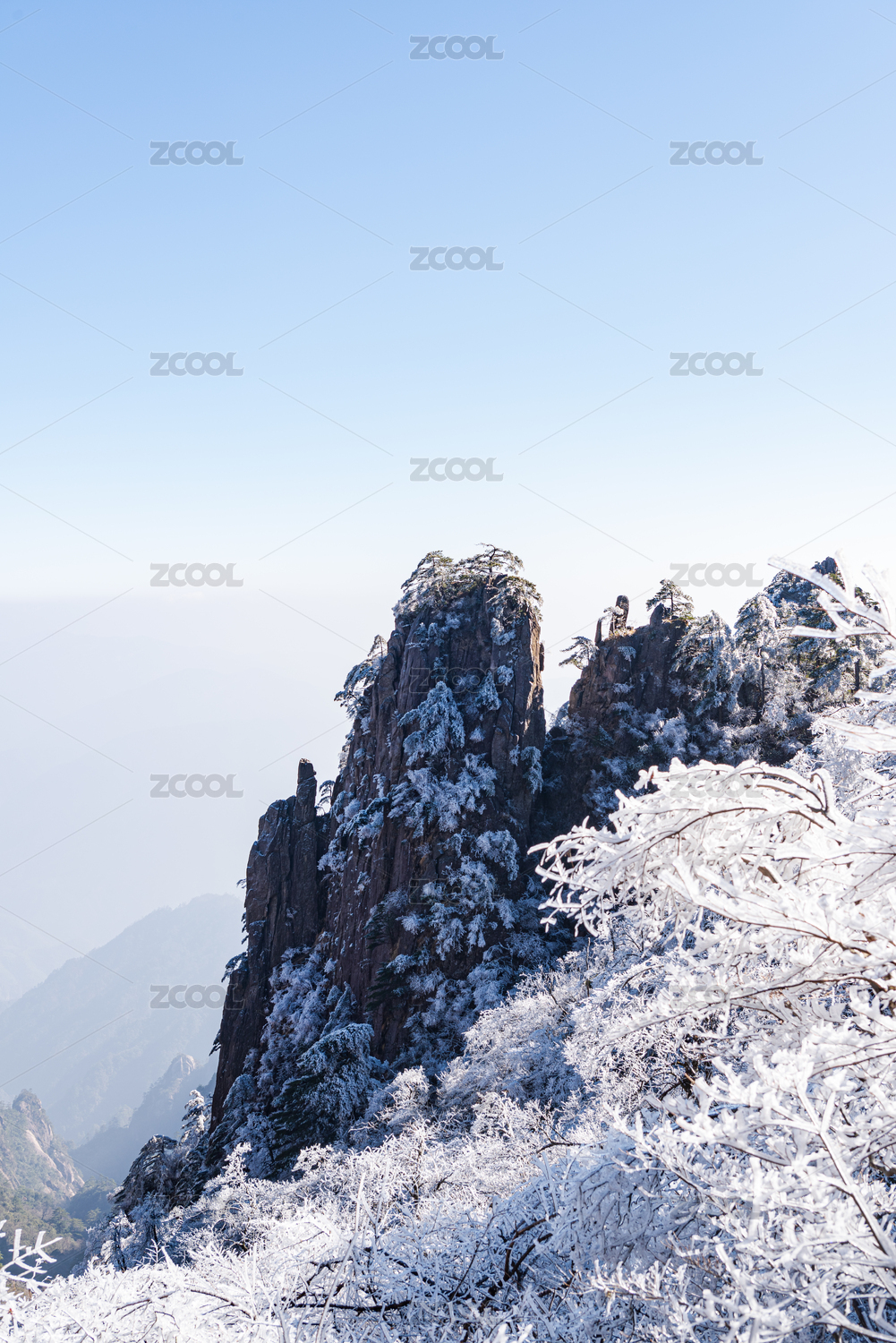 安徽,黄山,黄山市,黄山风景区,山顶,雾凇,冰,寒冷,天空,线条