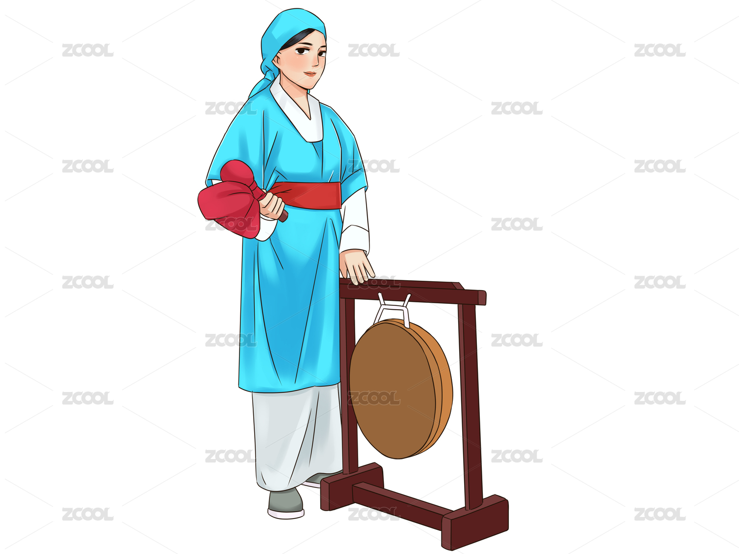 朝鲜素材传传统服饰演奏传统乐器打鼓