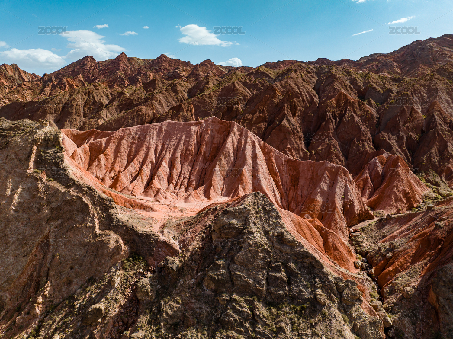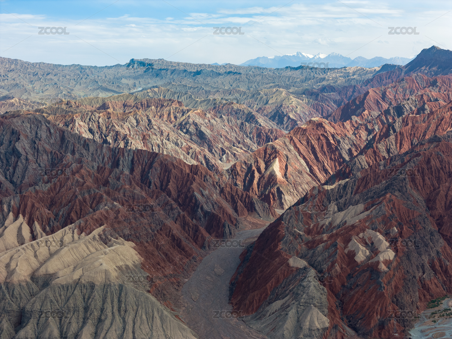 中国新疆克孜勒苏两山交汇航拍
