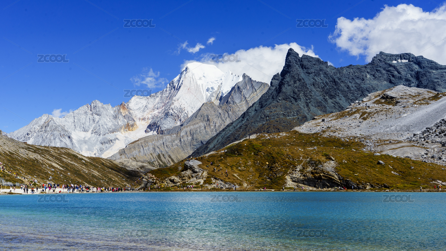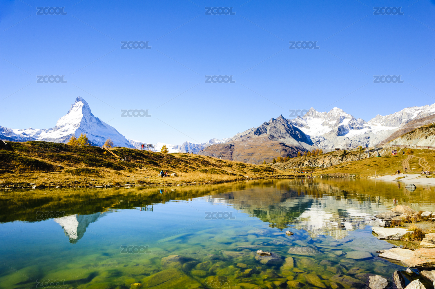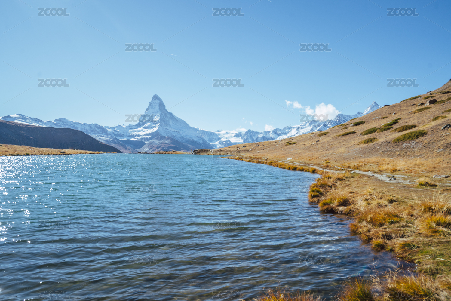 雄伟的瑞士马特洪峰雪山与美丽的高山湖泊