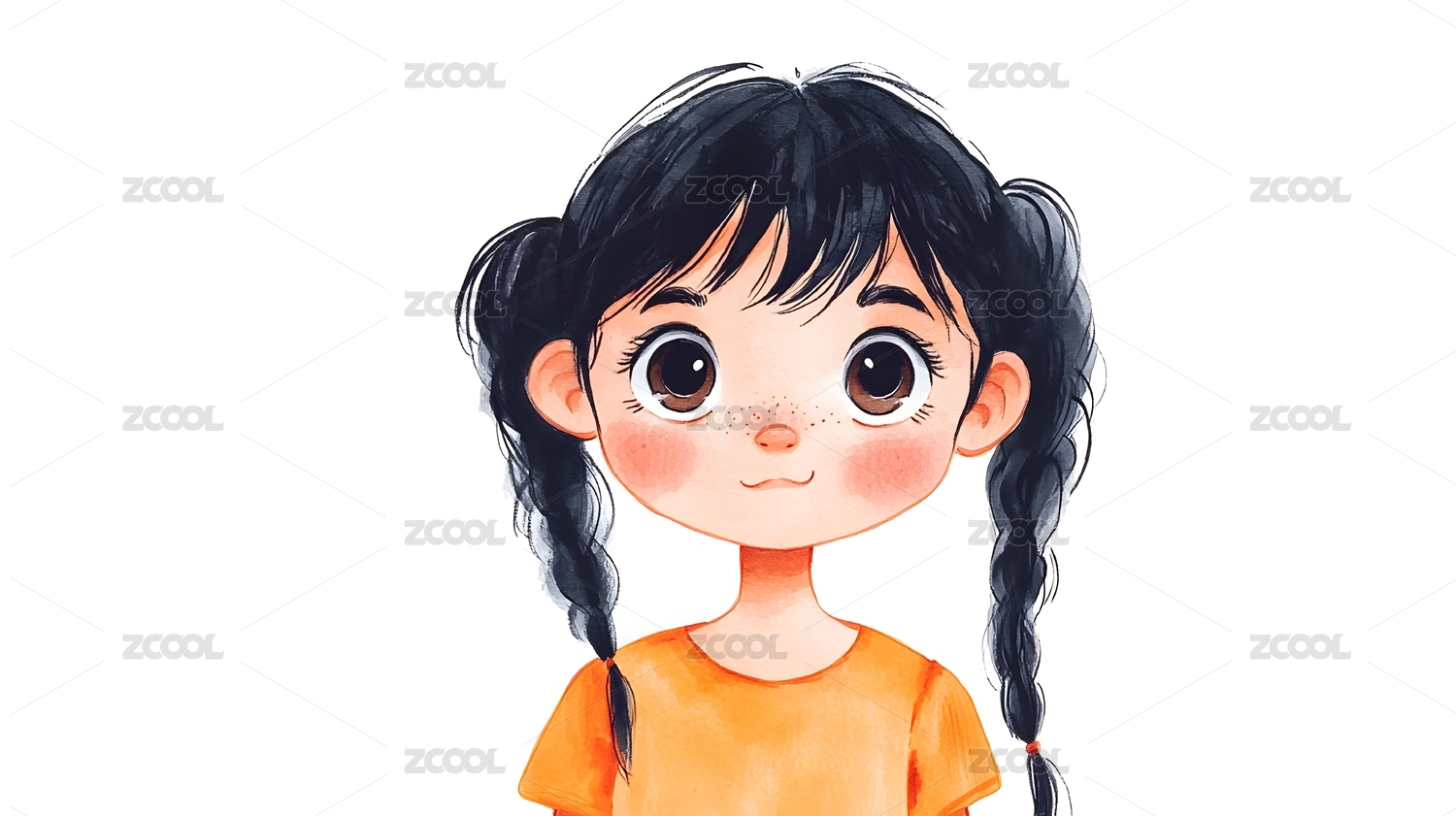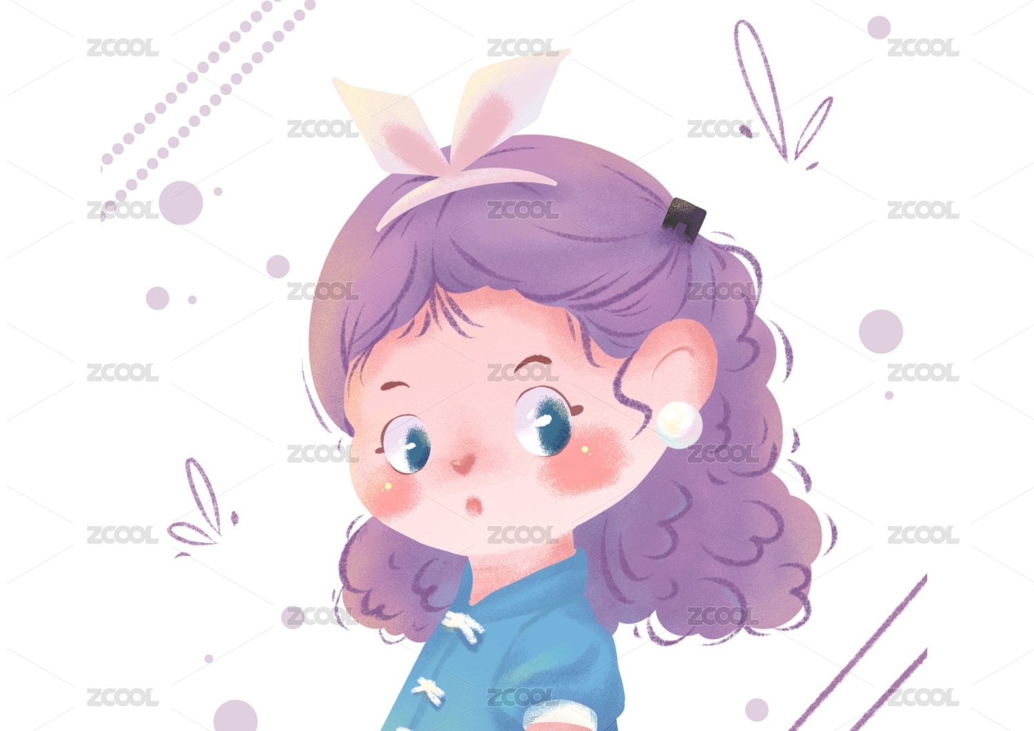 卡通小女孩挥手笑脸儿童节小孩开心矢量插画