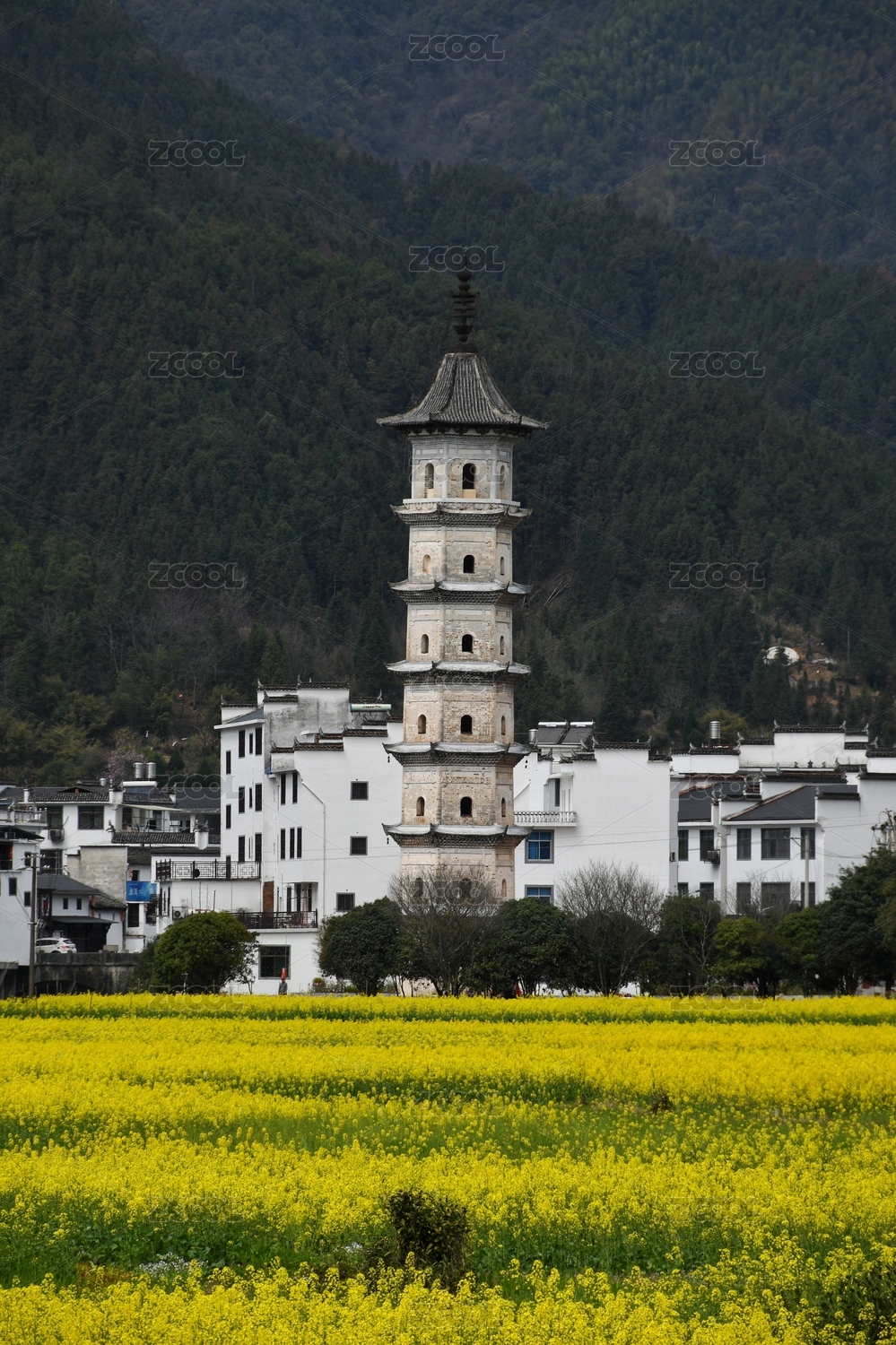 婺源,浙源,婺源县,浙源乡,春季,油菜花,龙天宝塔,侨乡,古建筑,文物保护单位
