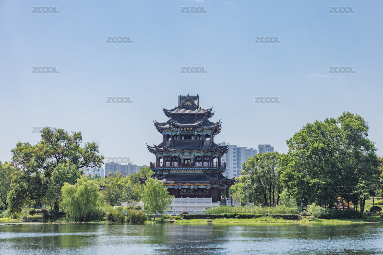 湖北武汉紫阳公园紫阳湖畔紫阳阁