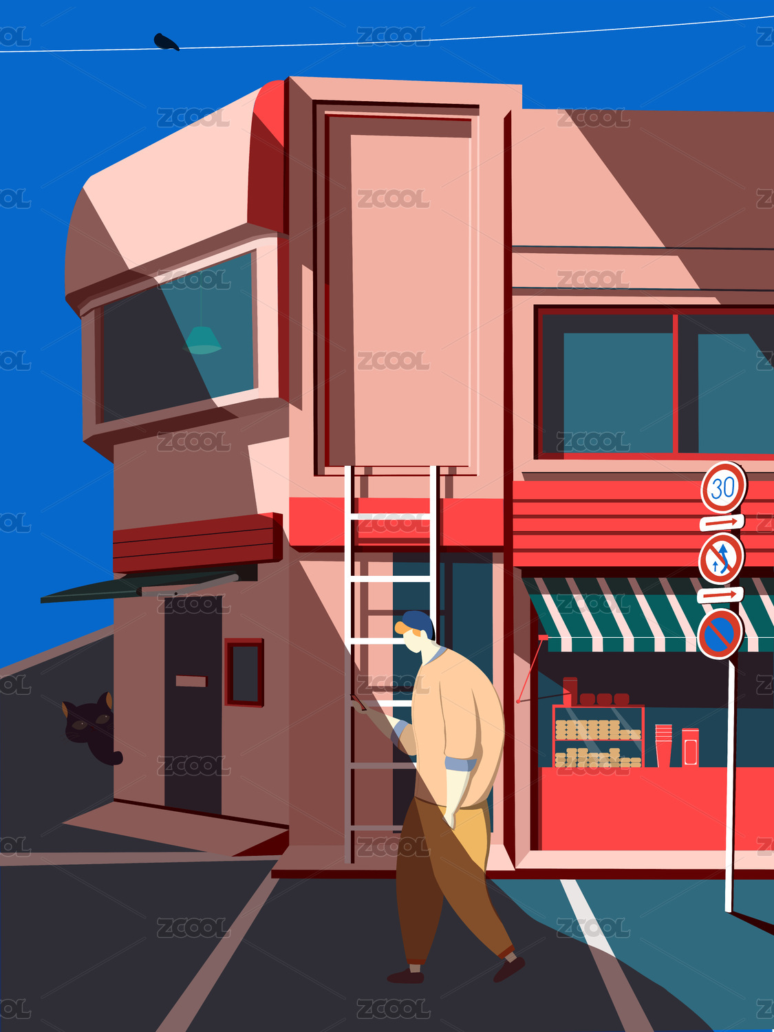 扁平风插画包装建筑广告