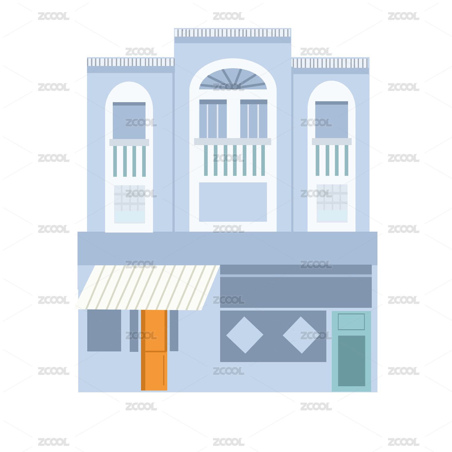 插画写实房子扁平啤酒植物路边台阶蓝色门口