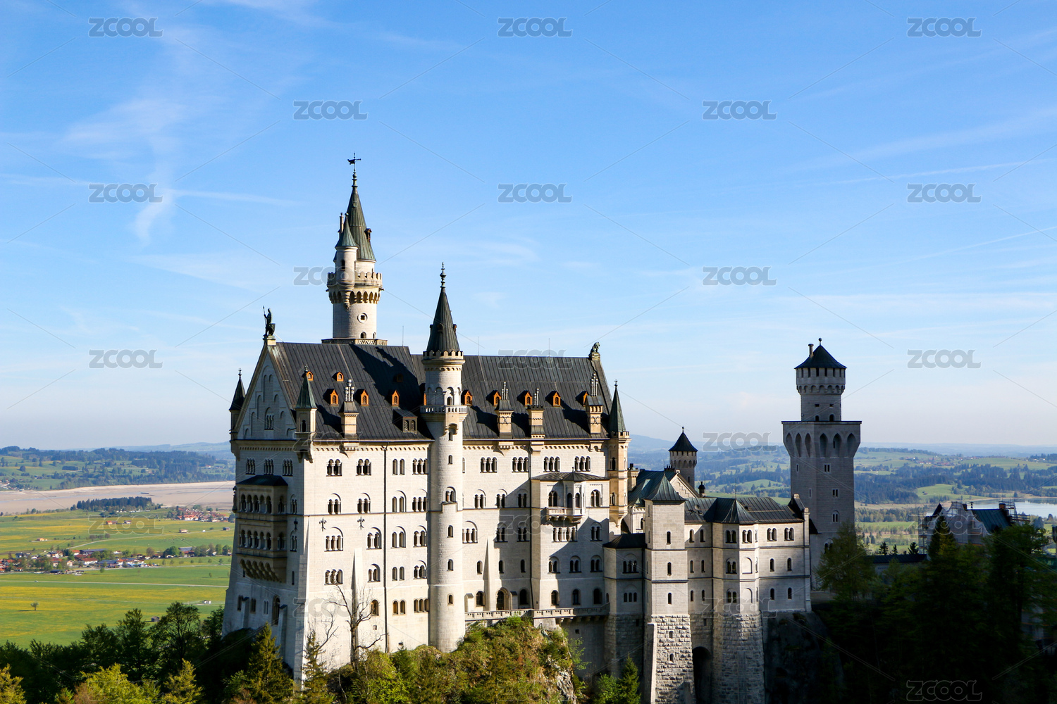 欧洲德国巴伐利亚西阿尔卑斯山麓的天鹅城堡