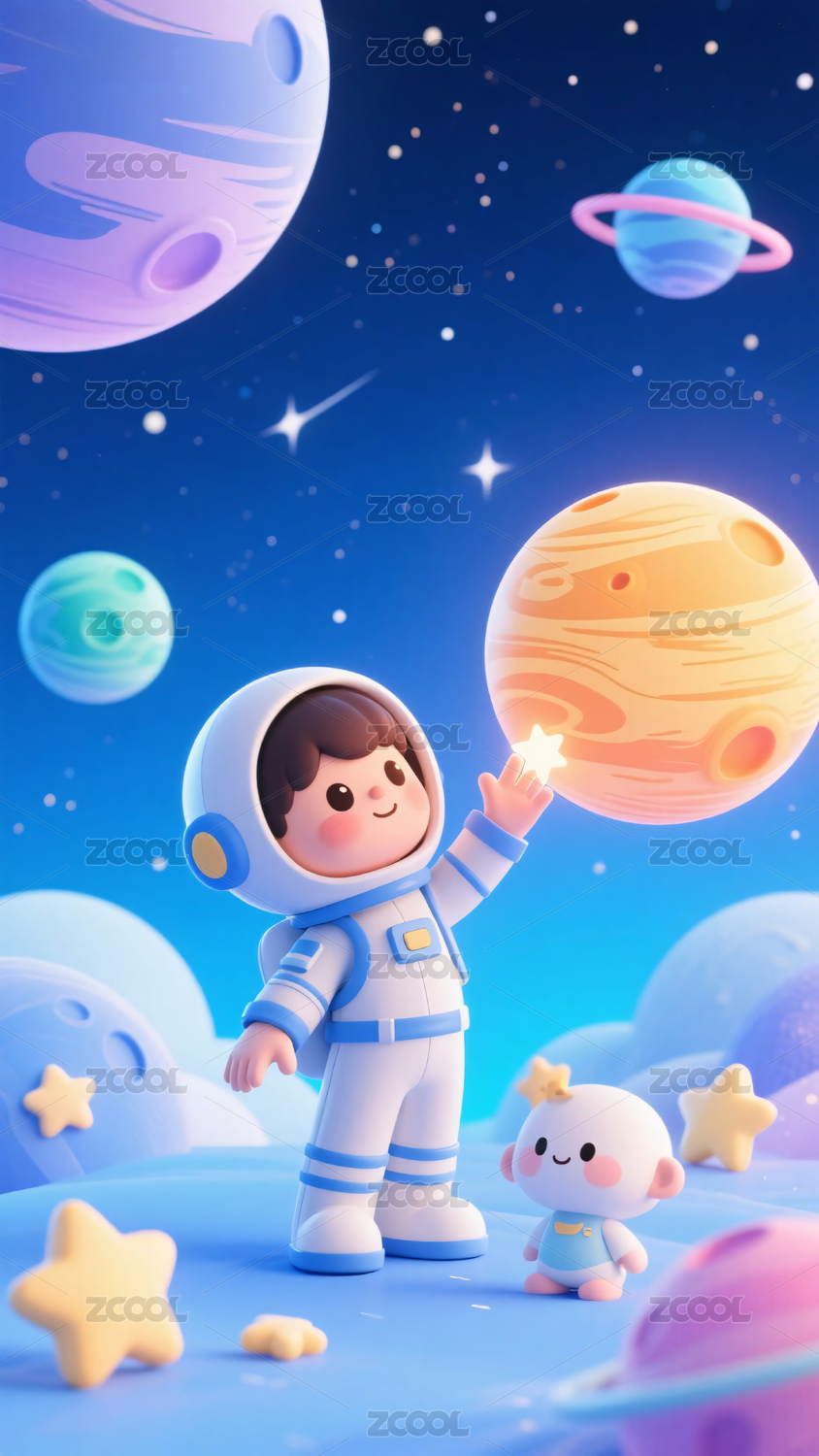 插画星球宇宙宇航员抱星星手绘梦幻场景