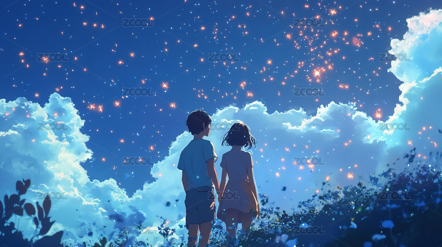 七夕情人节节日恋爱祝福浪漫唯美艺术插画