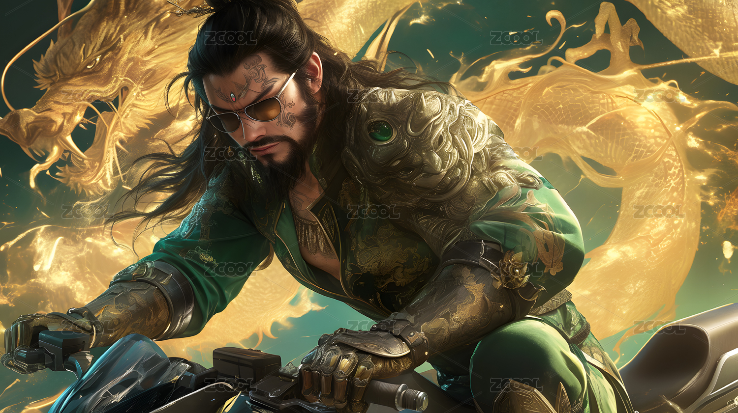 国潮风,骑车,摩托车,男人,插画,古代,中国风