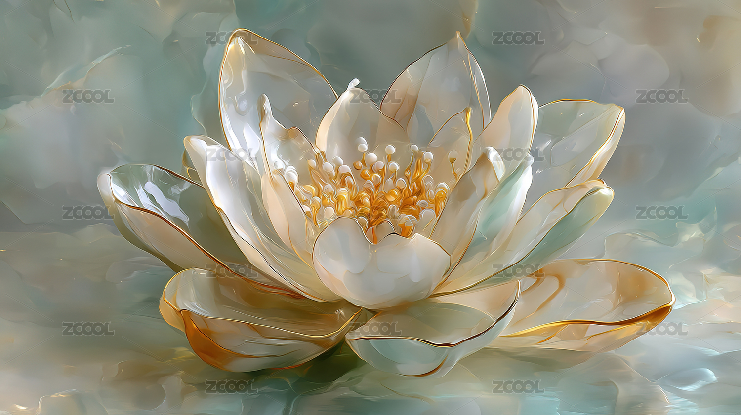 轻盈飘逸的莲花与丝带