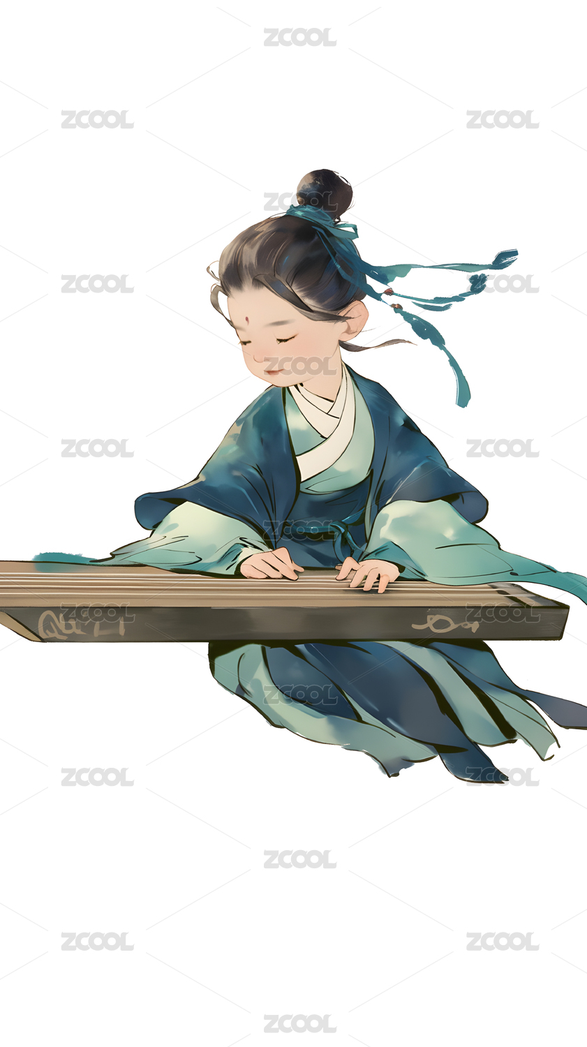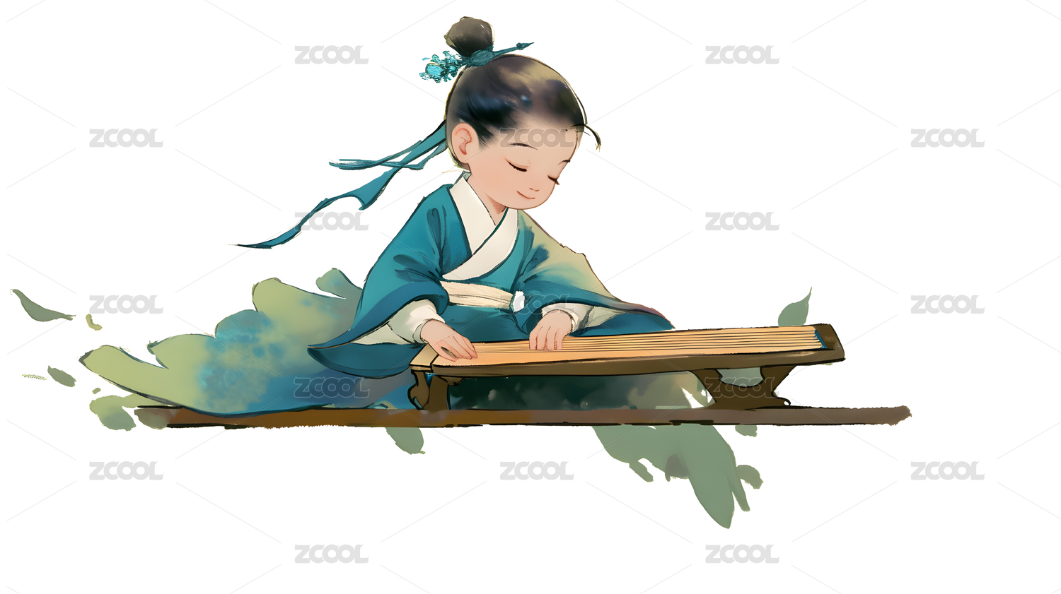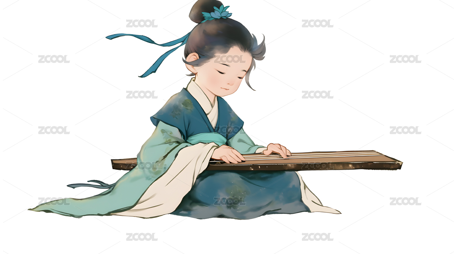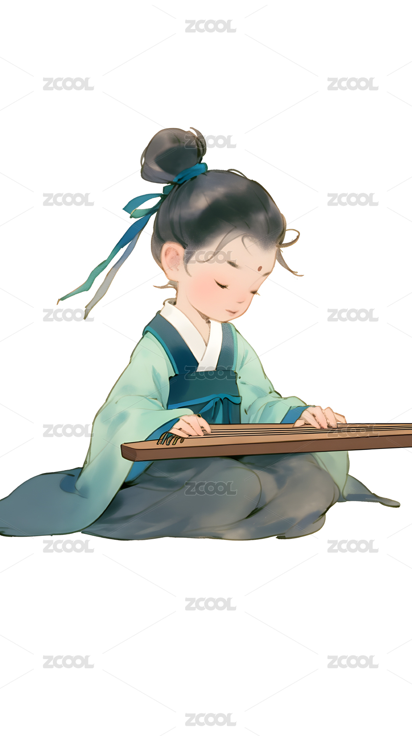 中国风,古风,弹琴,卡通,插画,人,汉服,孩子,儿童,可爱
