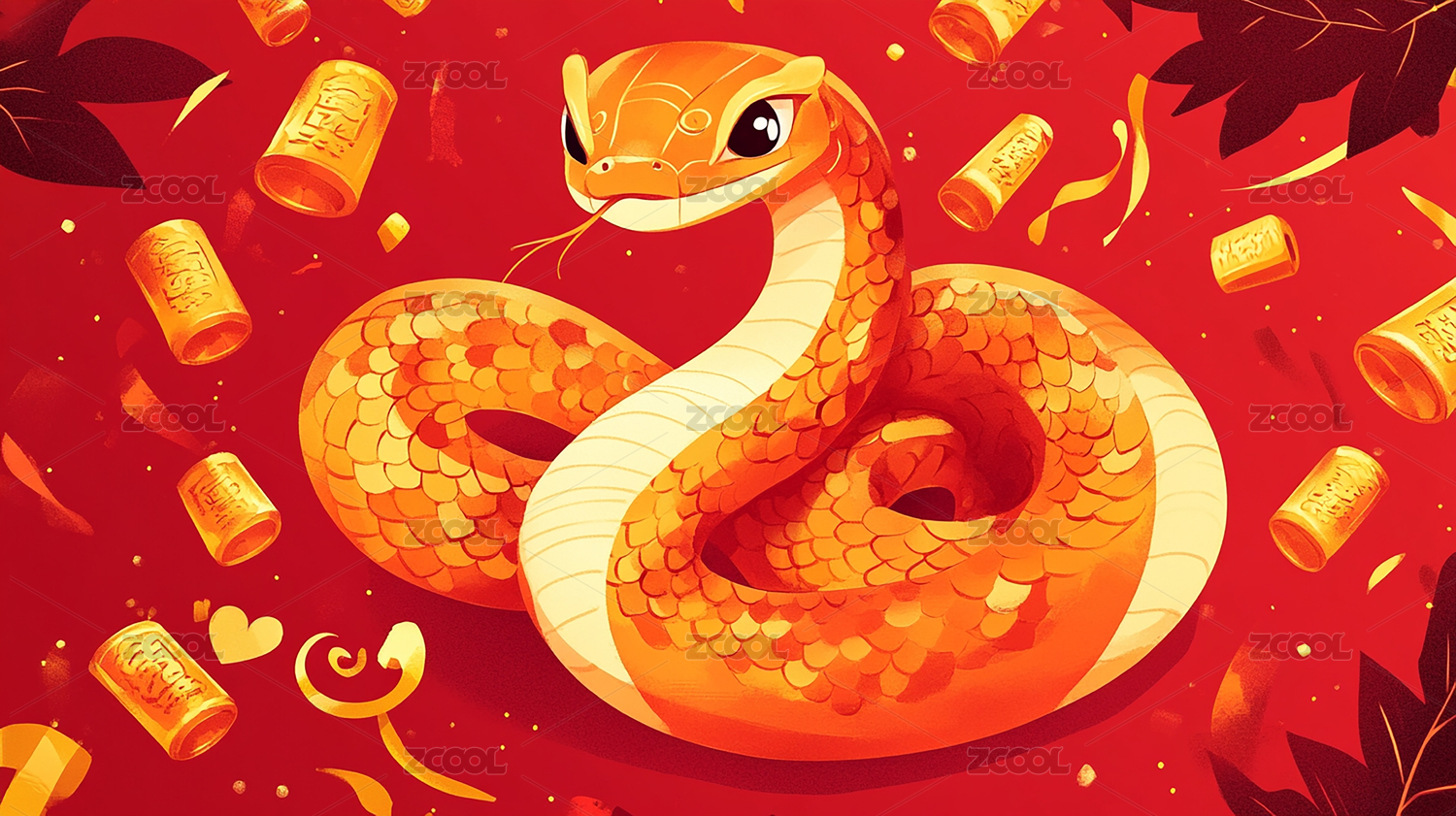 红色喜庆,背景,2025,蛇年,小蛇,插画
