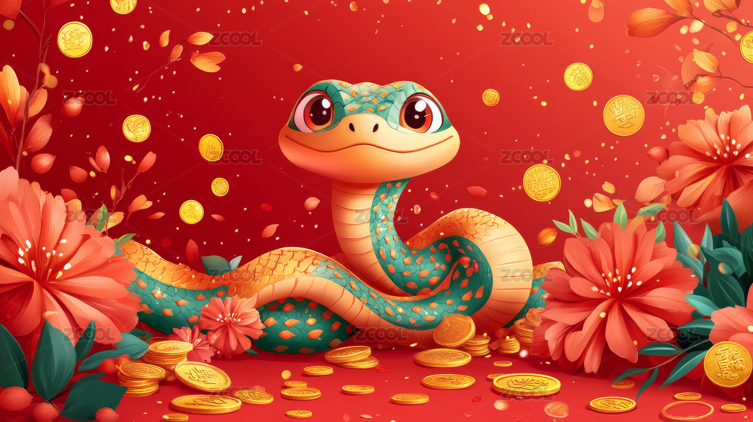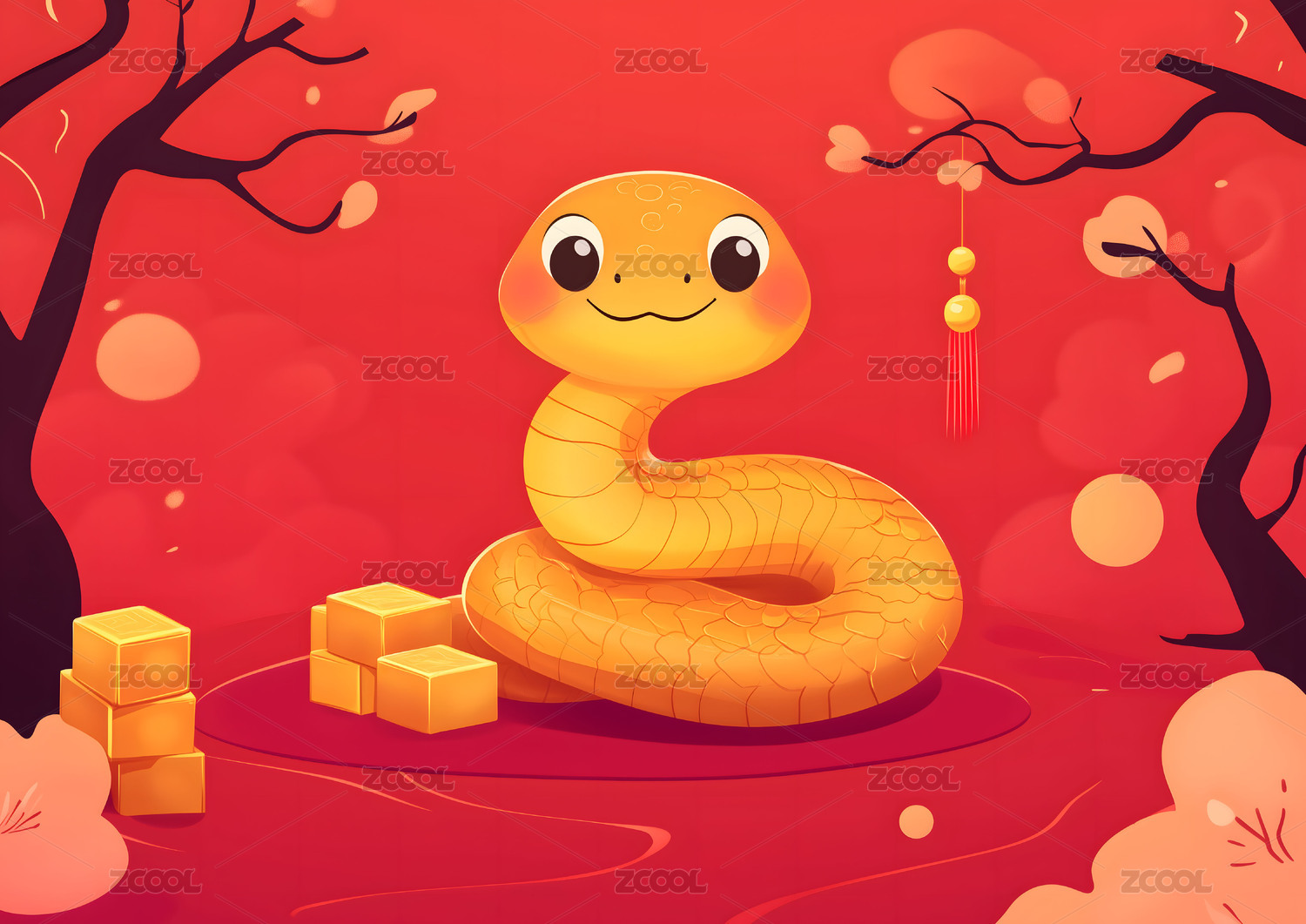 红色喜庆背景蛇年小蛇插画