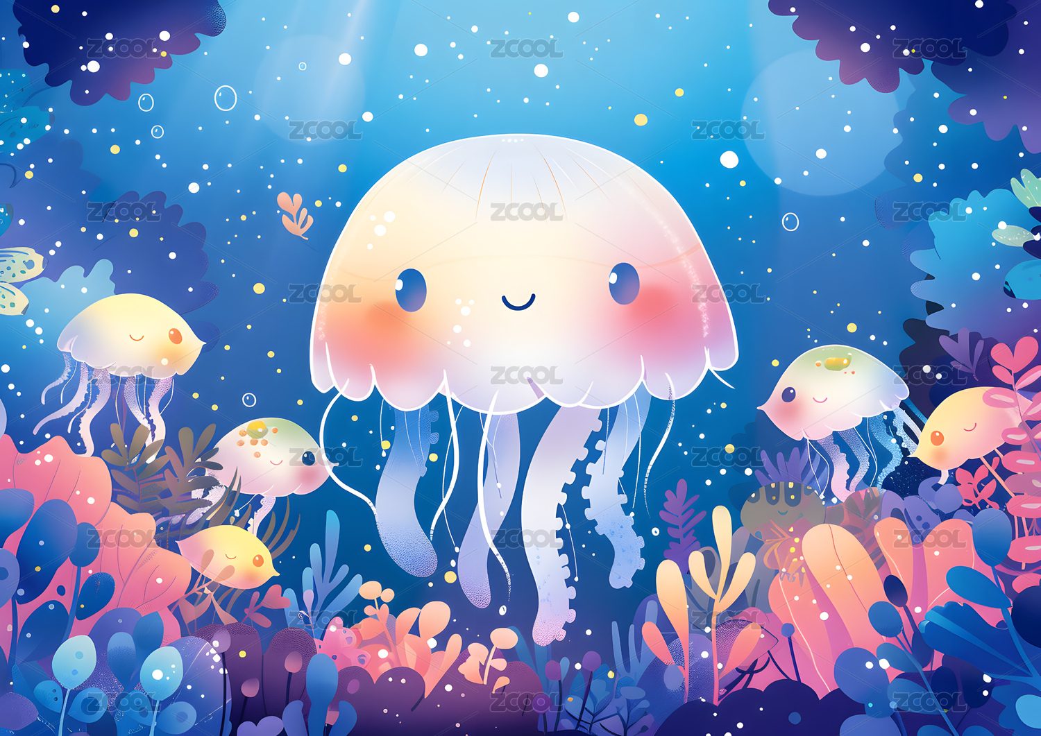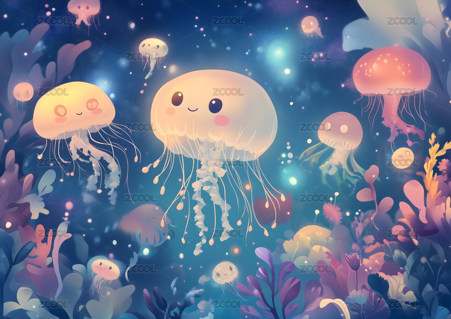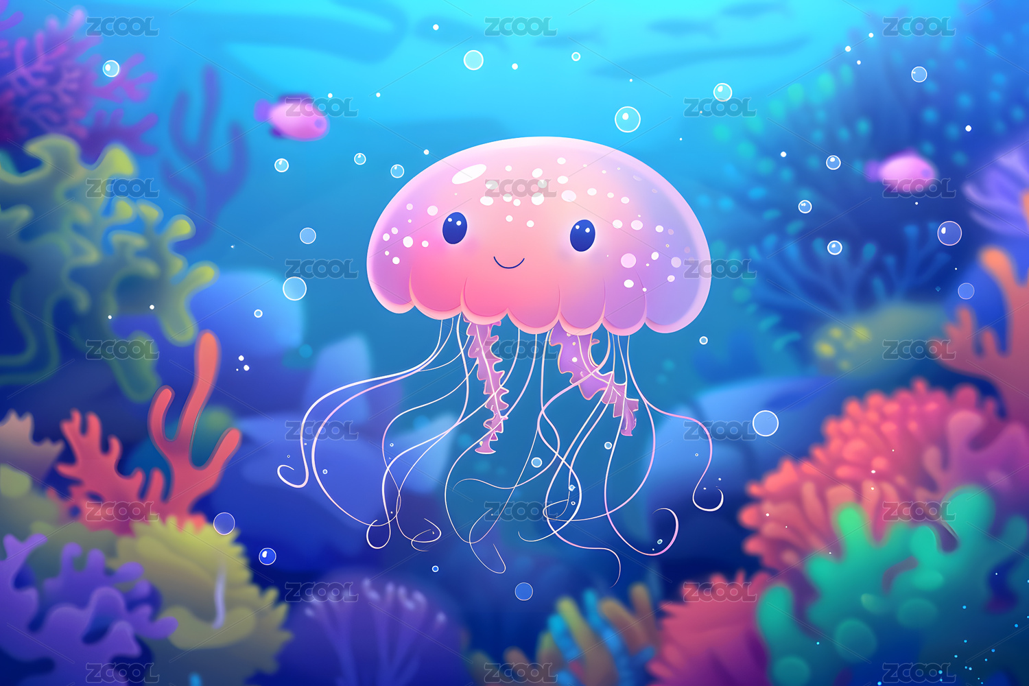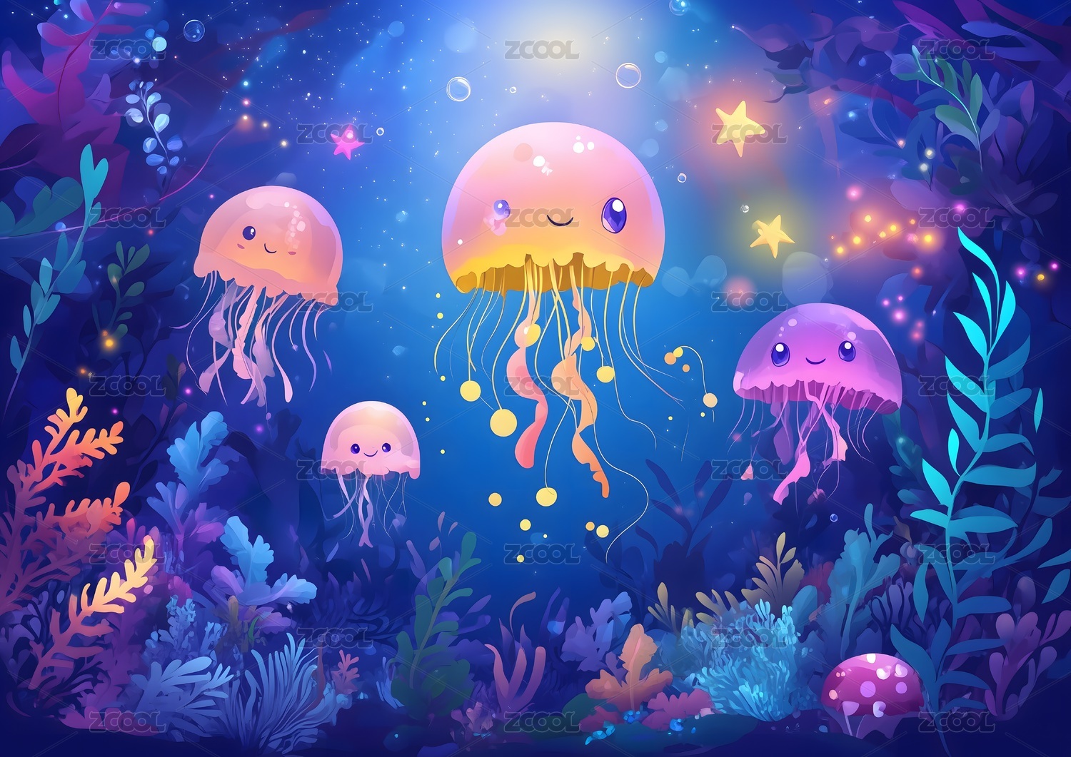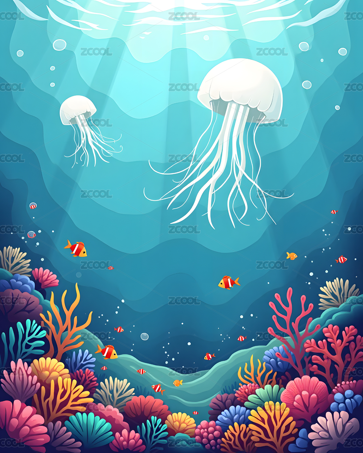海底世界3D海洋生物珊瑚梦幻唯美自然背景