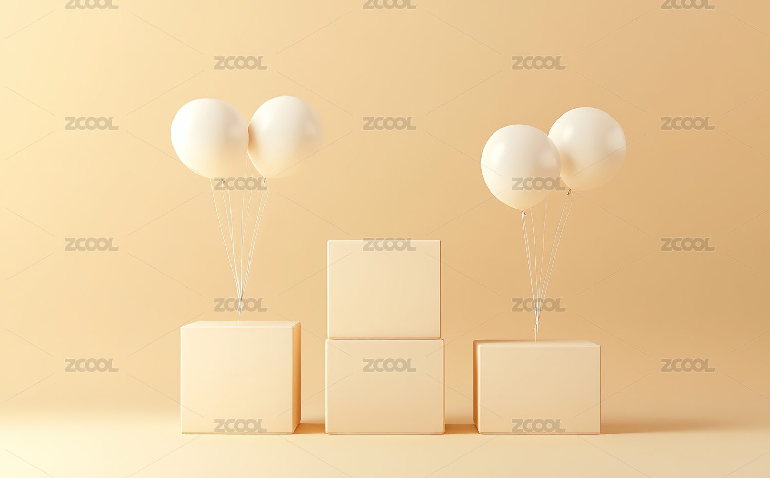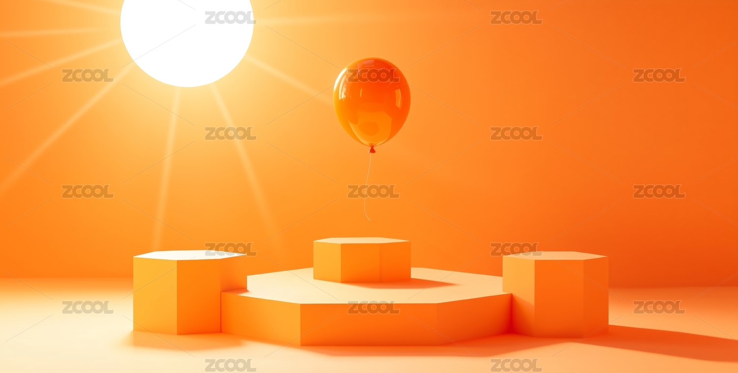 橙色背景下的几何舞台与气球