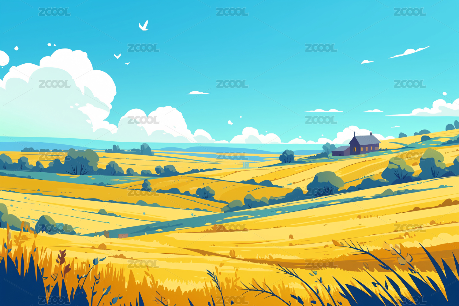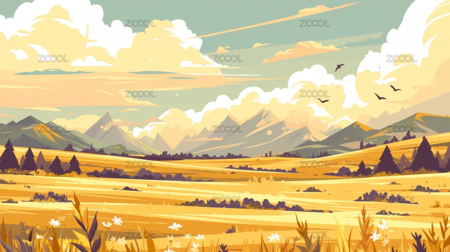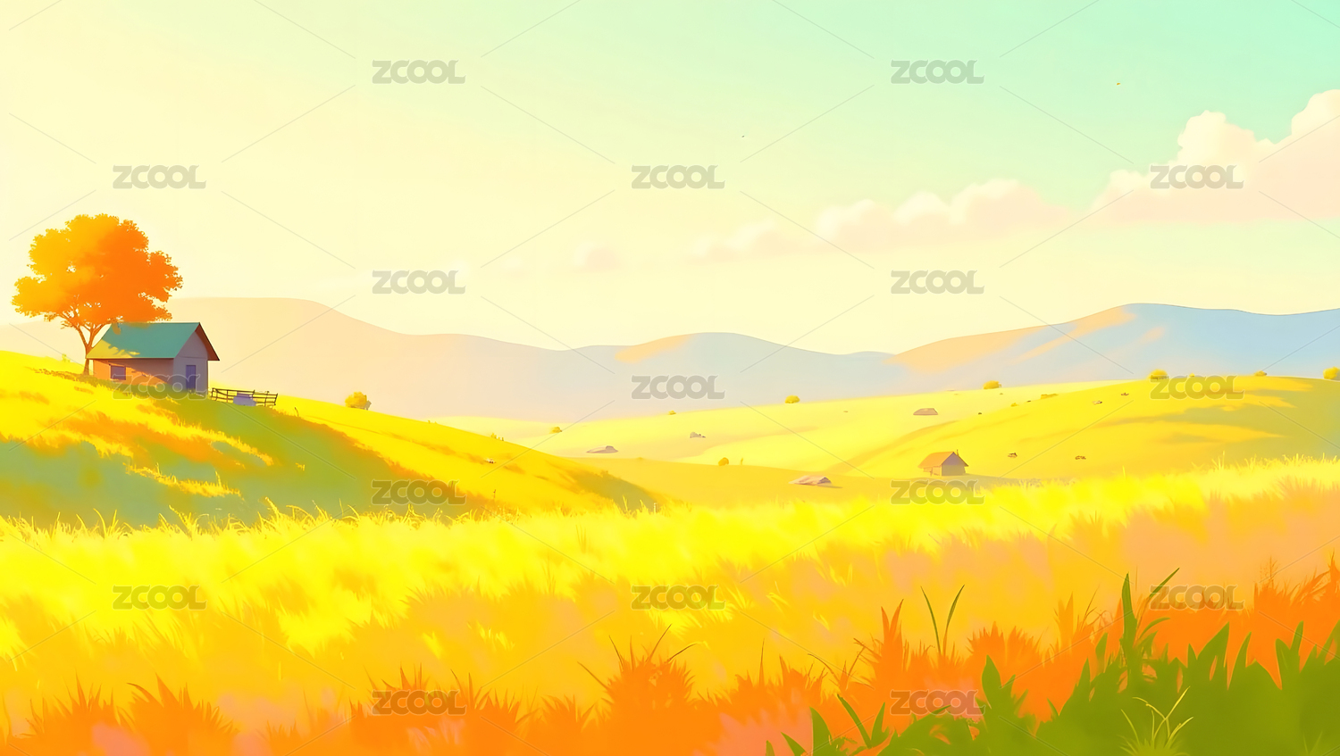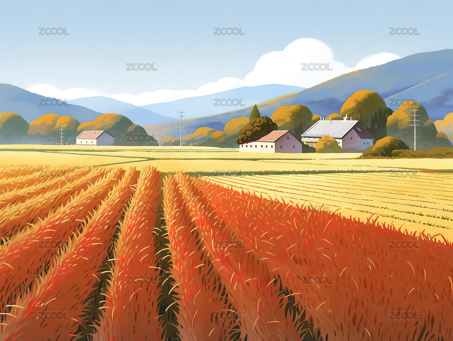 秋天秋季立秋秋分自然户外风景卡通漫画插画