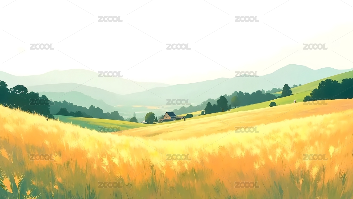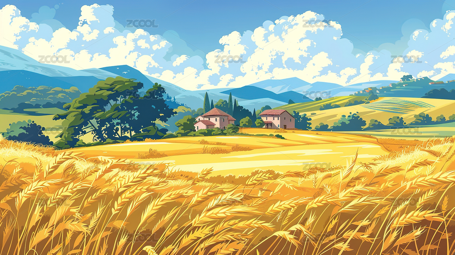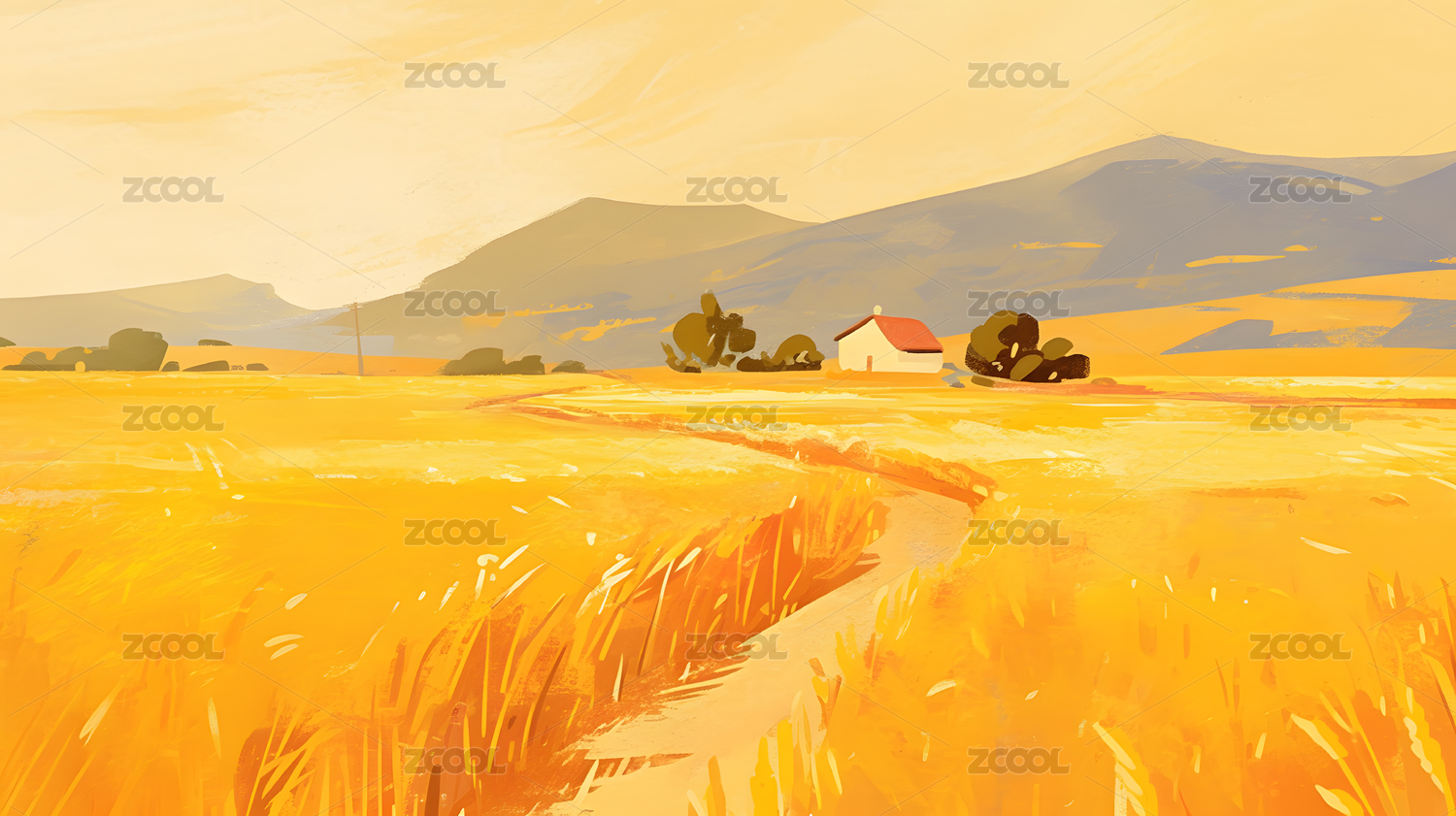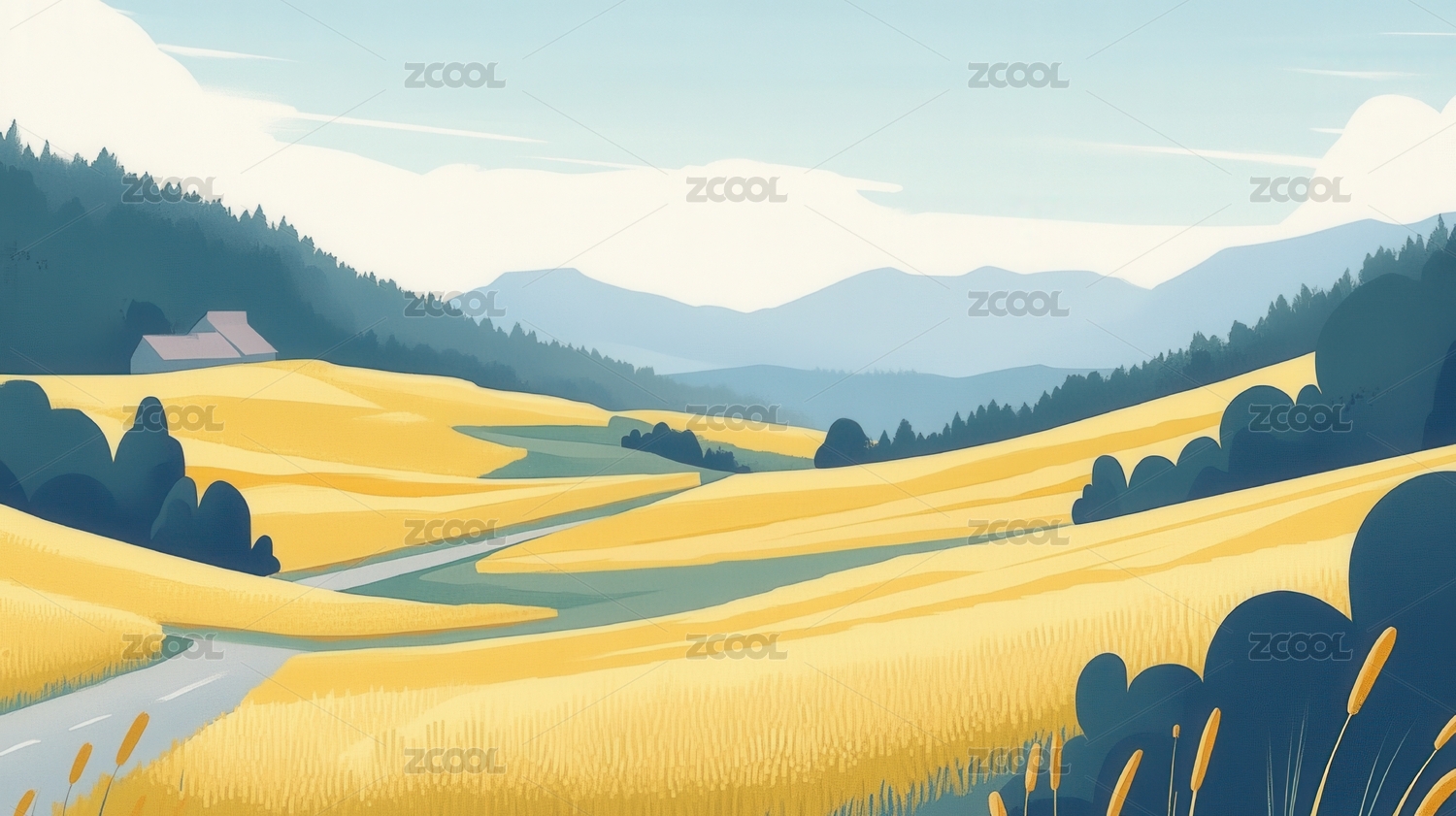 秋天秋季立秋秋分自然户外风景卡通漫画插画