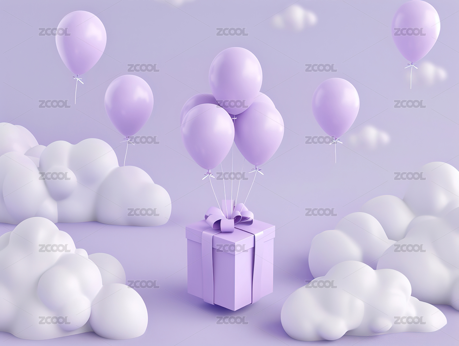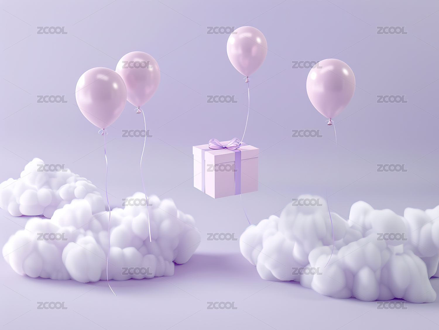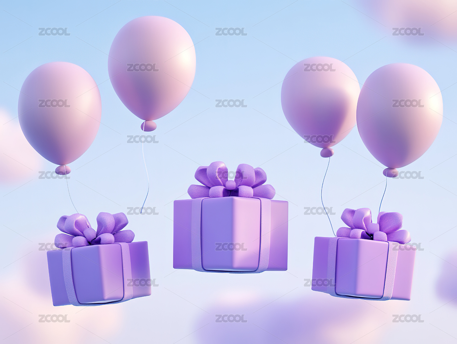气球,AI数字艺术,庆祝,背景,三维图形,插画,礼物,装饰,粉色,节日