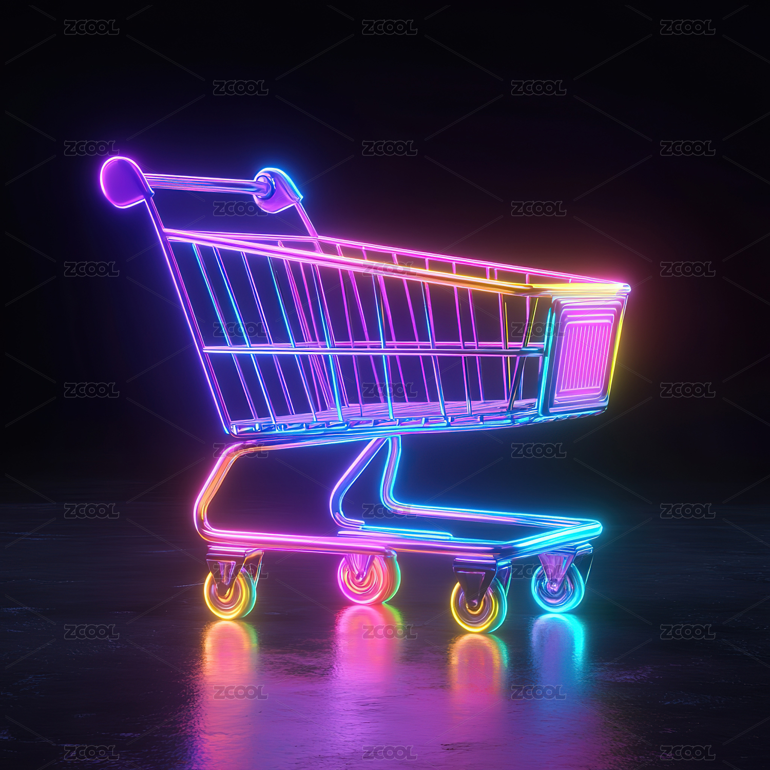 AI数字艺术,购物车,超级市场,购物,消费,购买,商务,商店,金属,特写