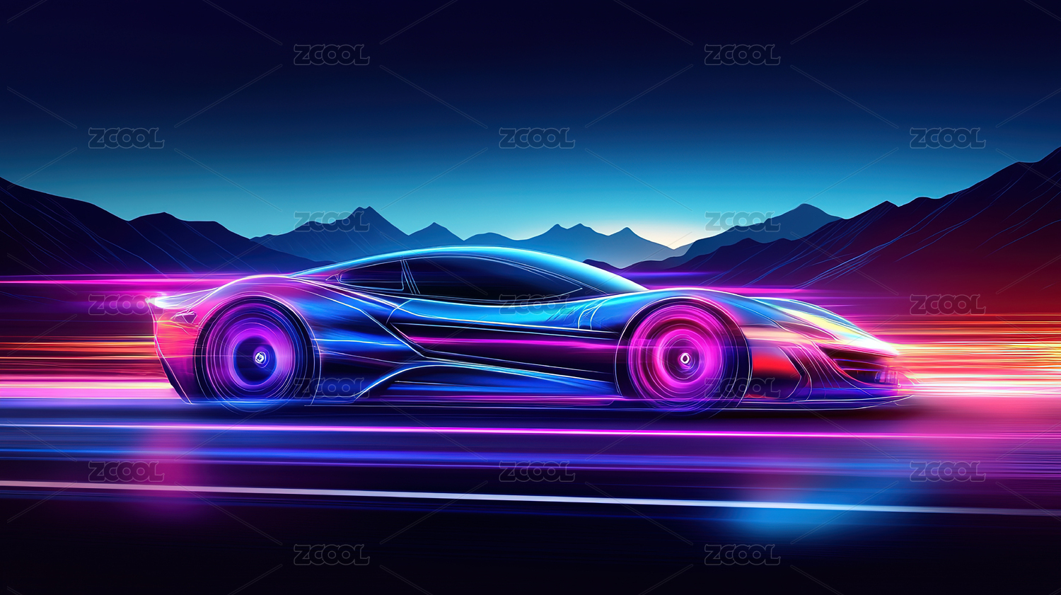 紫色霓虹光影中的疾驰跑车
